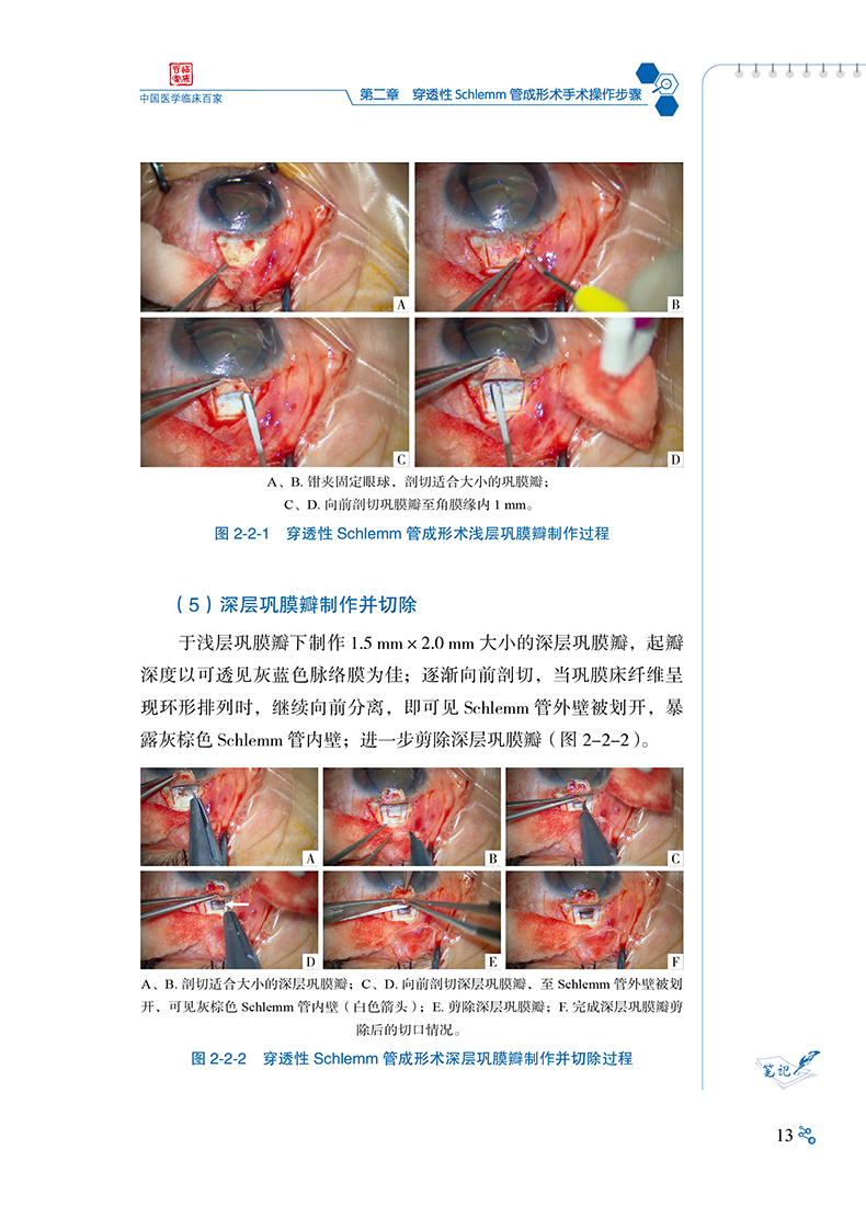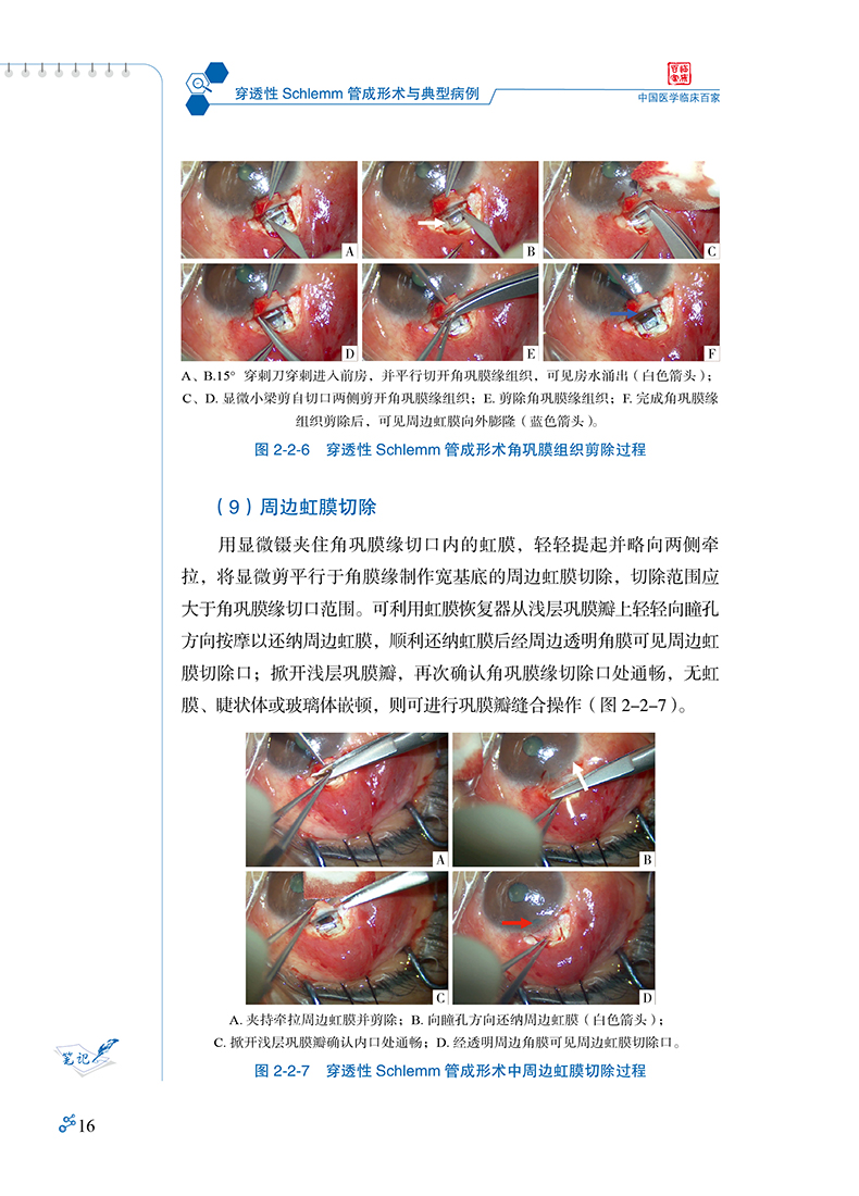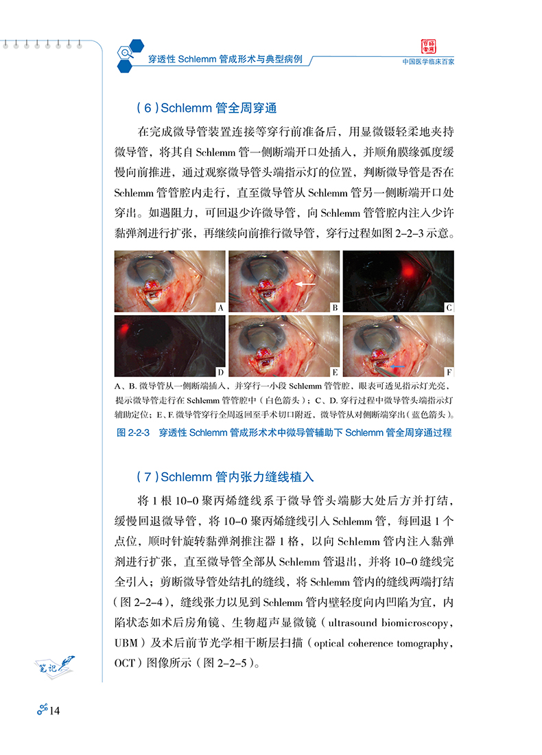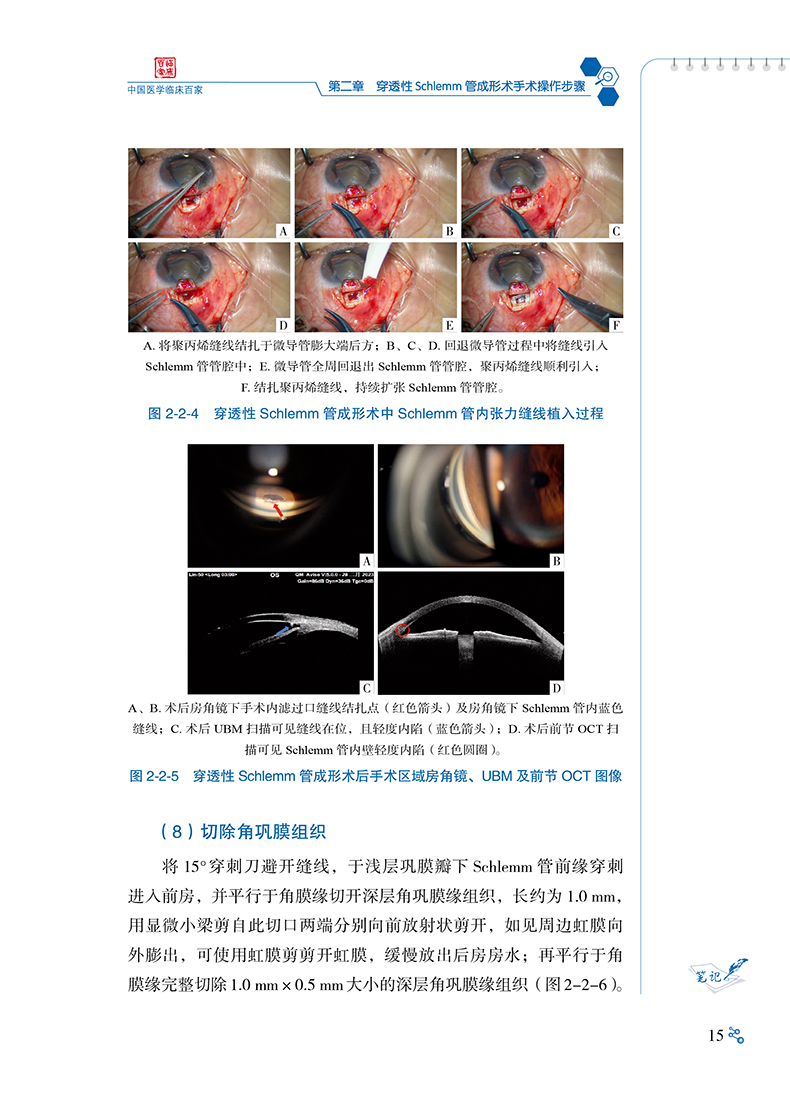 从 2015 年开始第一例穿透性 Schlemm 管成形术以来,他就不 断积累病例,并扩大了适应证,有了丰富的临床实践经验,发表 了 20 多篇相关文章。在形成系列研究成果的同时也建立了这项新 技术的操作规范与共识,本书则向我们介绍了包括病例、系列研 究成果到其团队关于穿透性 Schlemm 管成形术的操作及术后处理的 想法与观点,在临床上也收获了广大患者的信任和选择。我在临 床上也向他学习,开展了穿透性 Schlemm 管成形术,在对一些难治
