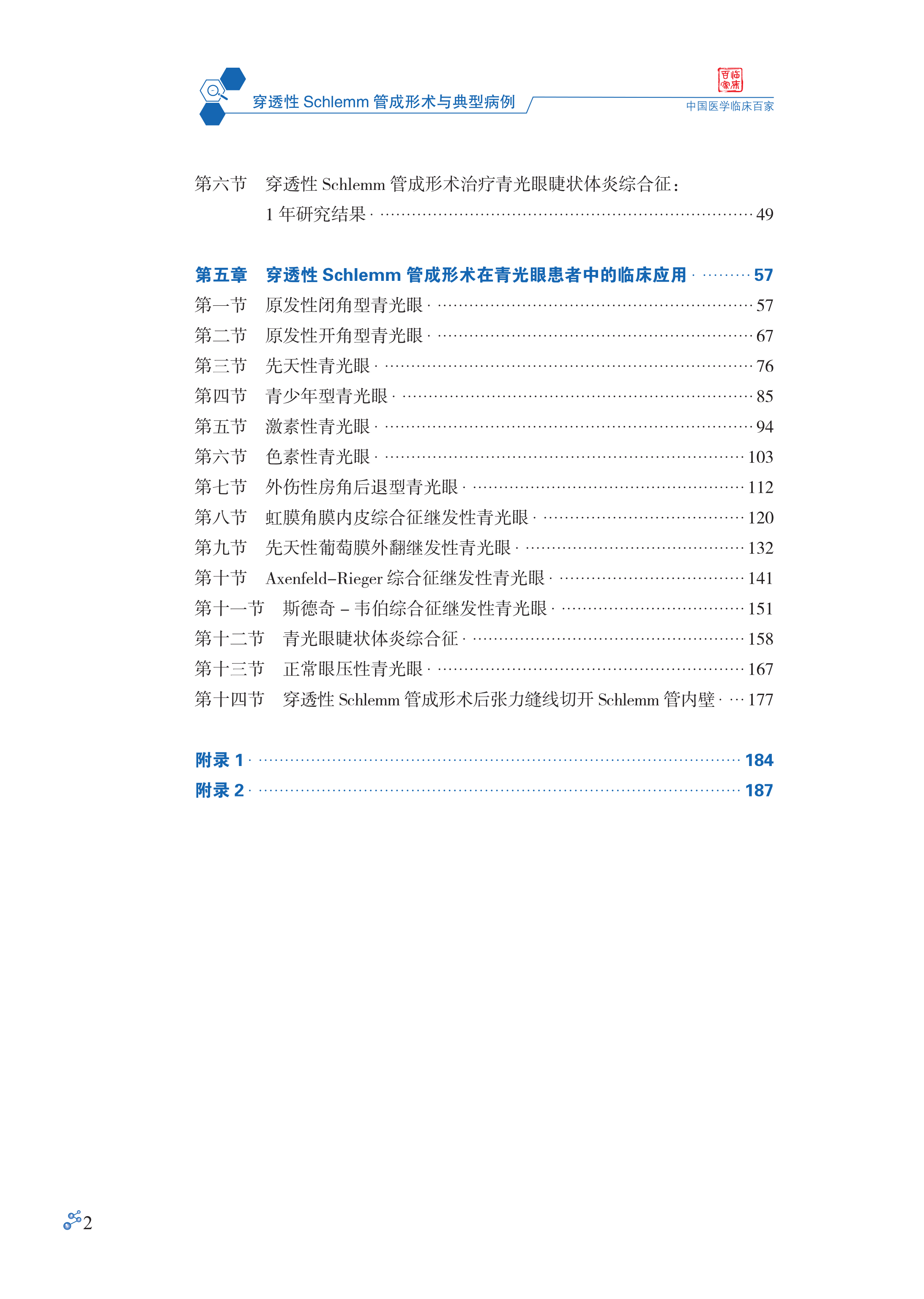 这本书记录了他探索穿透性 Schlemm 管成形术 8 年来实践的典 型病例,更重要的是他不仅收集一个一个的病例,还开展了前瞻 性的真实世界研究,形成病例系列的总结,其观察到的临床效果具有更好的参考性。很多医学和科学发现及技术发明产生于临床特殊病例和个案 典型病例的研究和分析,关注个案是临床研究的起始点。所以本 书所收集病例的分析和思想是其精华所在,更是经验的交流和想一种创新性青光眼手术的提出,到临床的开展,再到国内外 学者的认可是一个持续、长久的过程,在梁远波教授承担邯郸眼 病研究的过程中我就明白他具备坚持不懈的品质,可以完成这样 的长跑。作为一名医生,我们都需要不断地思考,不断地探索, 我很欣慰也很欣赏他善于思考的工作态度。希望我们眼科同道都