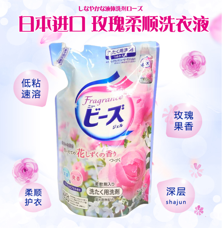 【日本原装进口】新版日本花王KAO 洗衣液替换装 玫瑰花果香 护理衣物560g