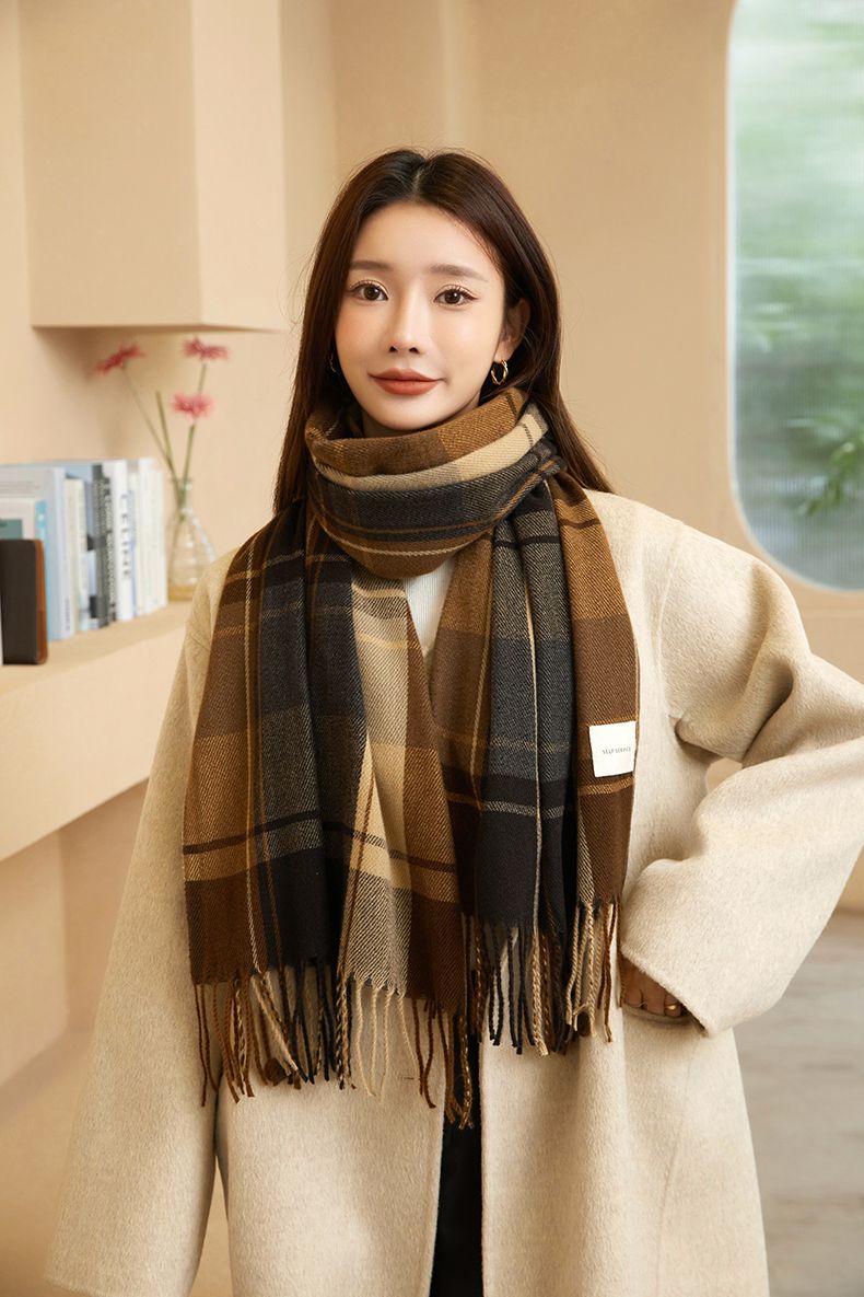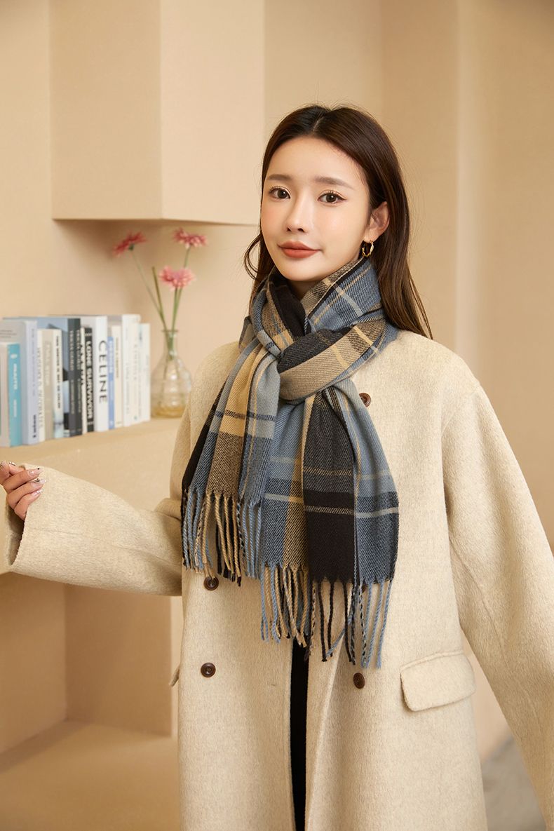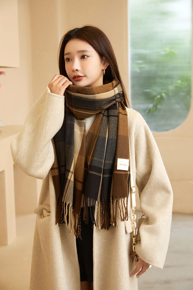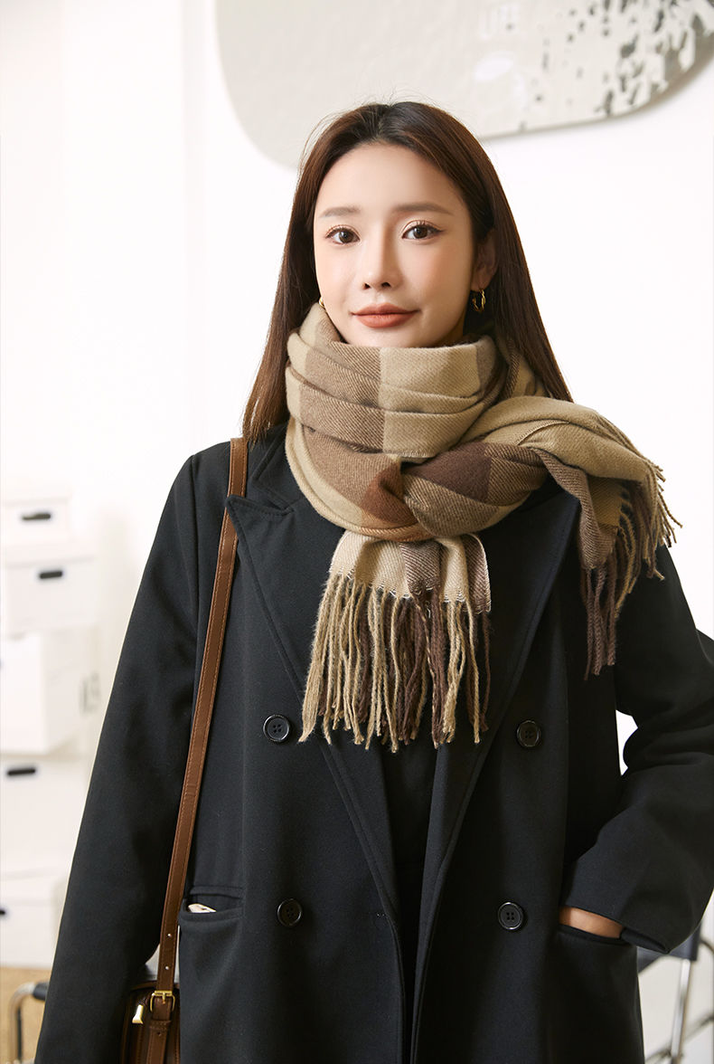 【轻奢仿羊绒围巾❗️衣橱常备】超百搭超好看,优雅时尚,软糯手感,微弹不紧绷,流苏男女情侣款保暖围脖/披肩/毛毯多用父亲节礼物新年礼盒年货礼盒