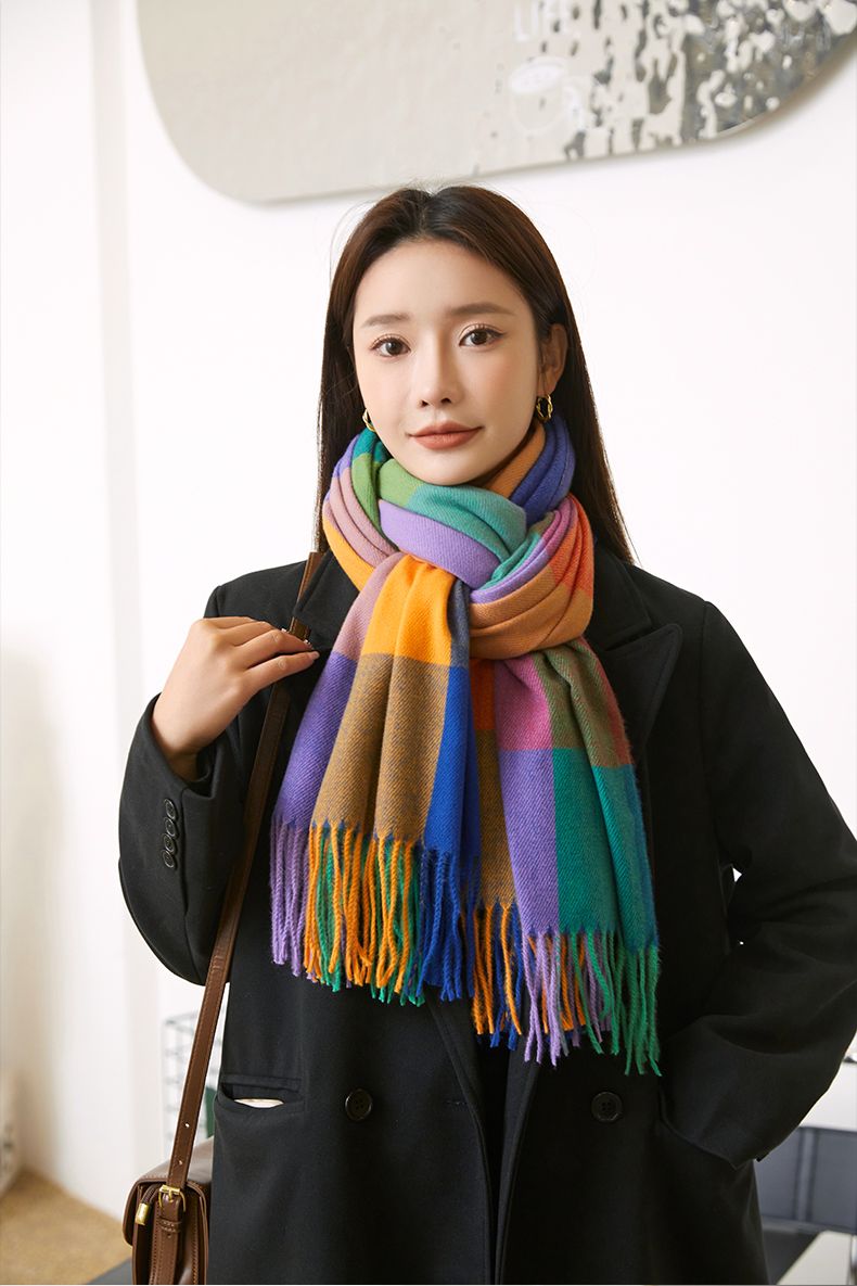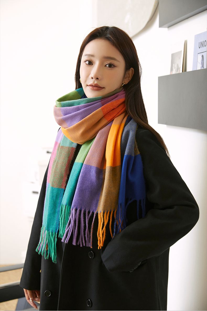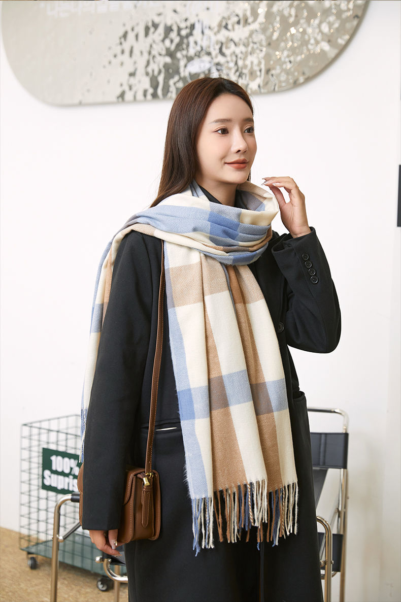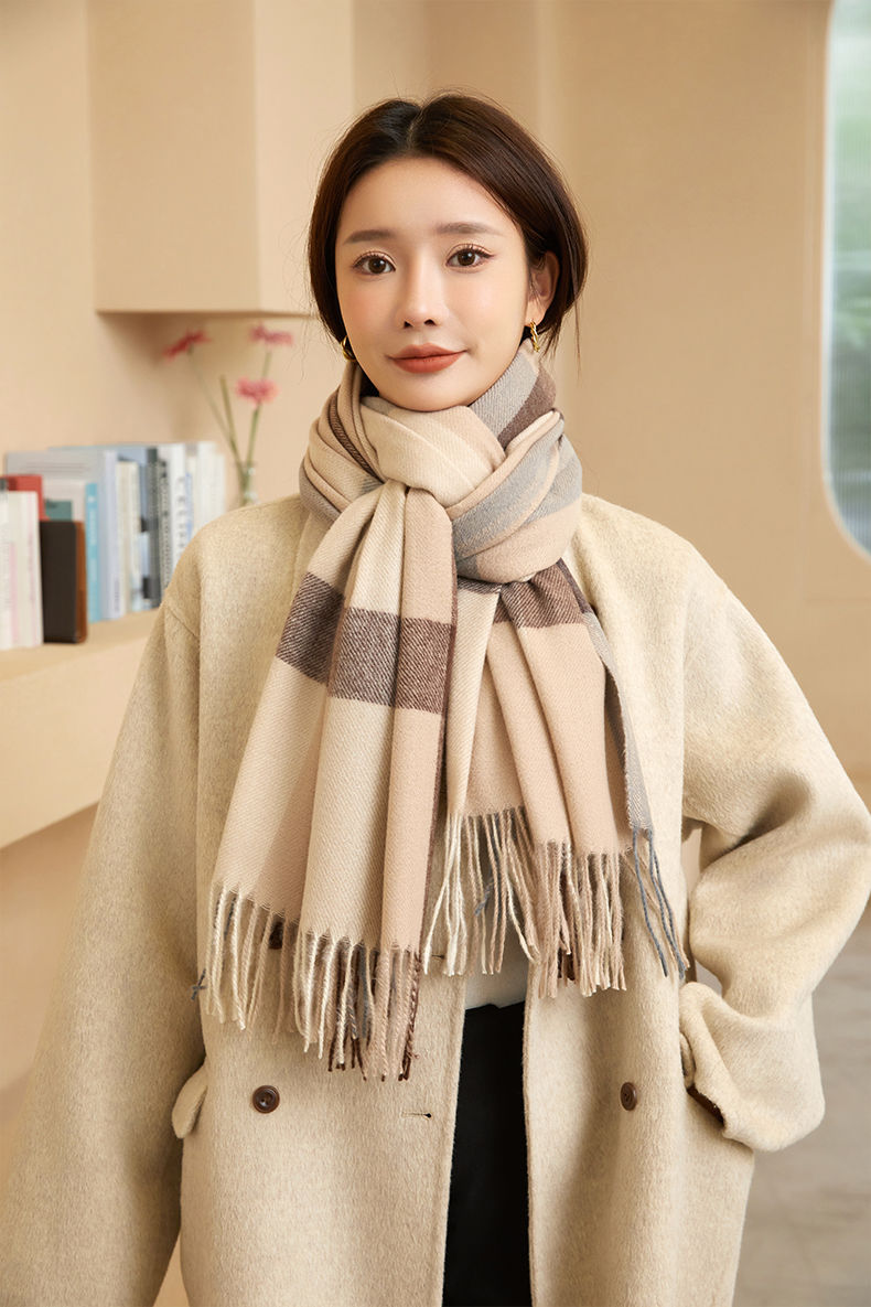【轻奢仿羊绒围巾❗️衣橱常备】超百搭超好看,优雅时尚,软糯手感,微弹不紧绷,流苏男女情侣款保暖围脖/披肩/毛毯多用父亲节礼物新年礼盒年货礼盒