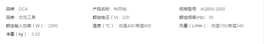 DCA东成 热风枪 AQB06-2000