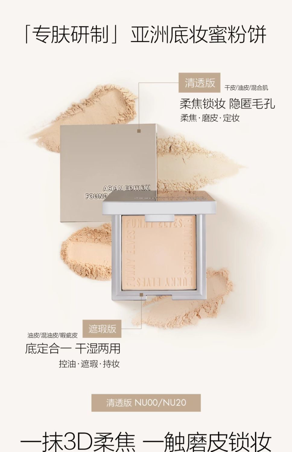 现货▲Funny Elves方里控油粉饼 7g