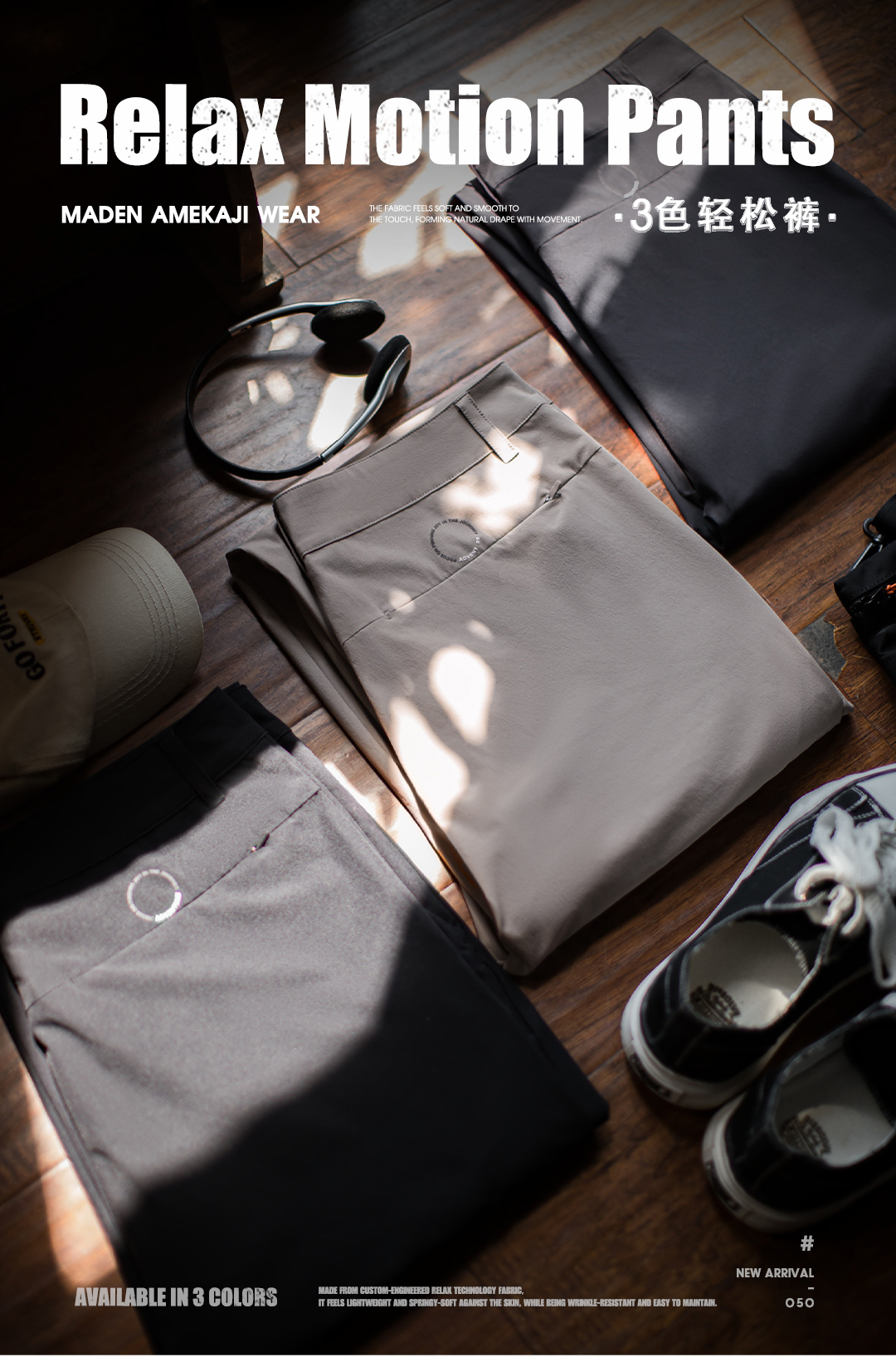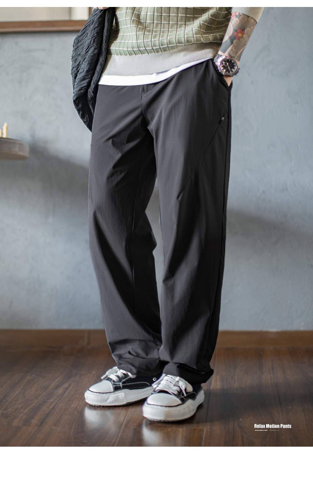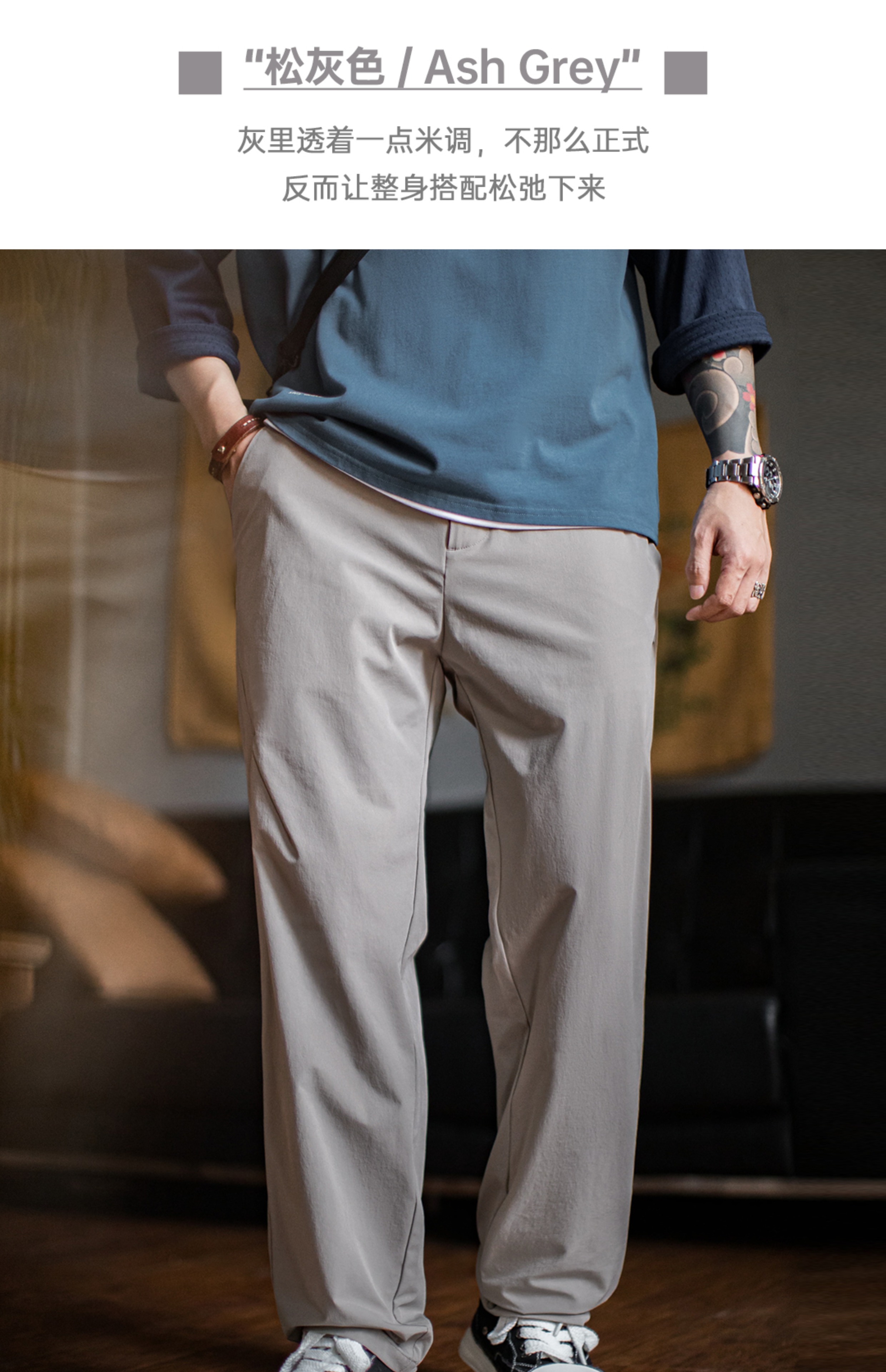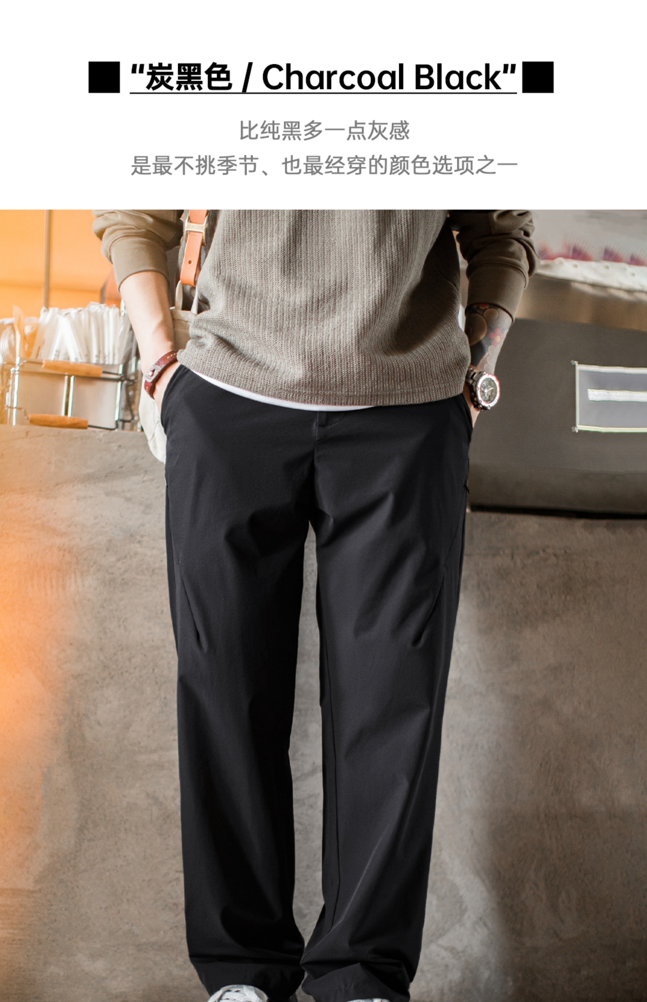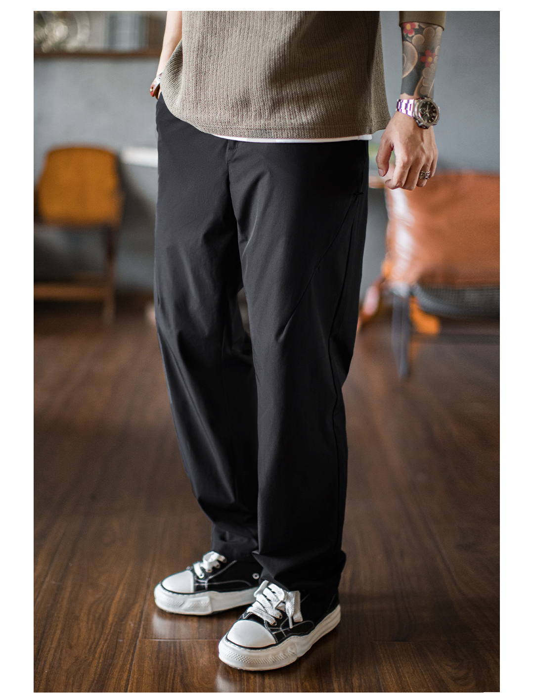 马登工装休闲西裤垂感cleanfit老钱风黑色褶皱西裤长裤子薄款男夏