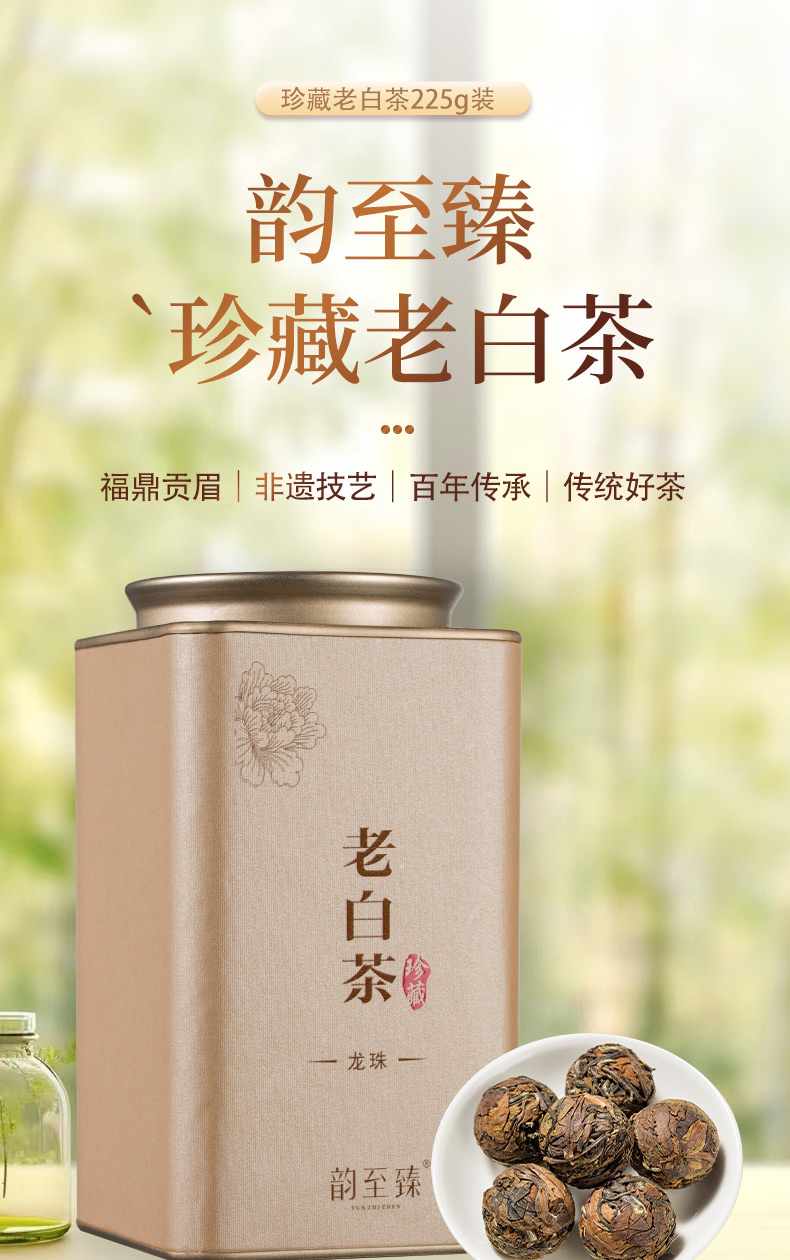 【珍藏 老白茶龙珠】韵至臻 珍藏 老白茶龙珠 225克/罐