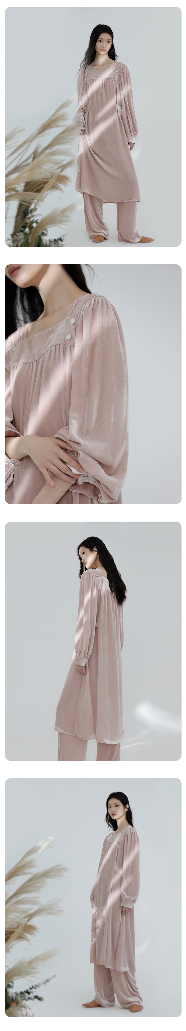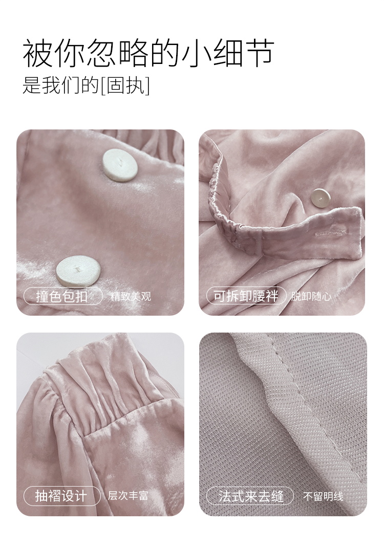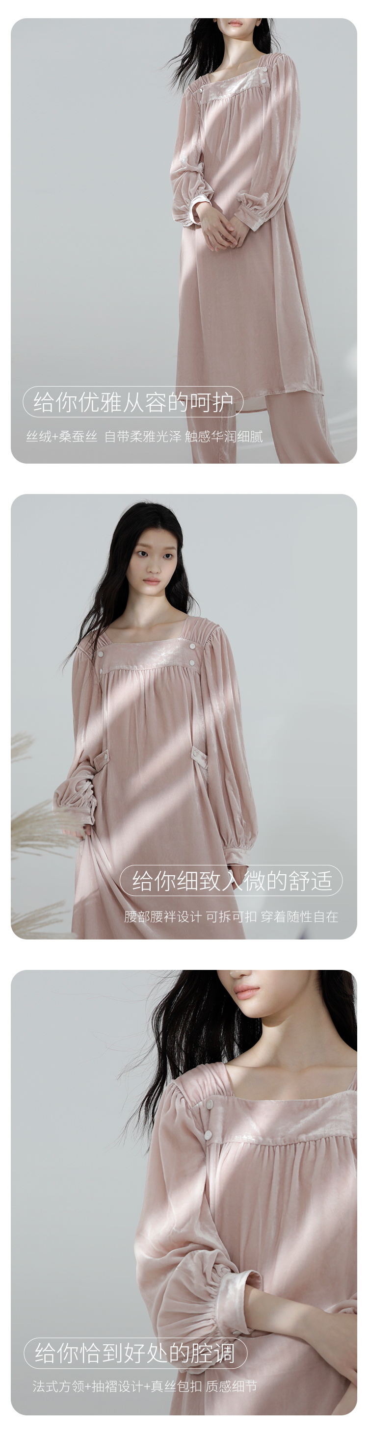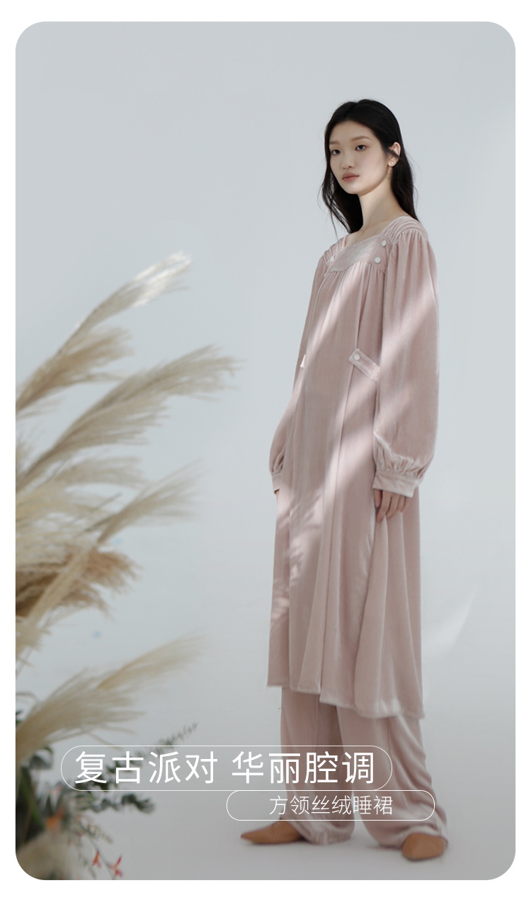早秋新品』桑罗桑蚕丝绒睡裙复古法式方领睡衣女款家居服秋冬外穿