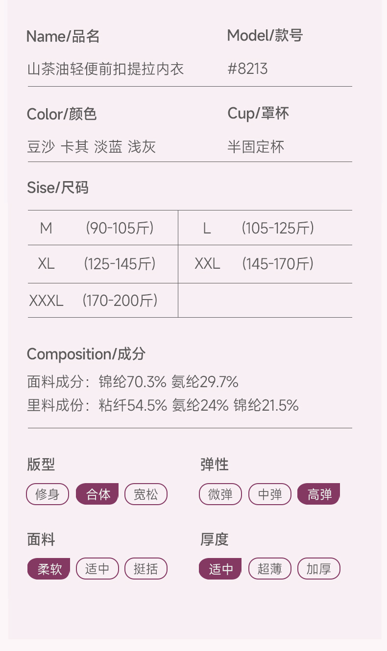 【两件装】草本初色妈妈款山茶油轻便前扣提拉内衣 8213