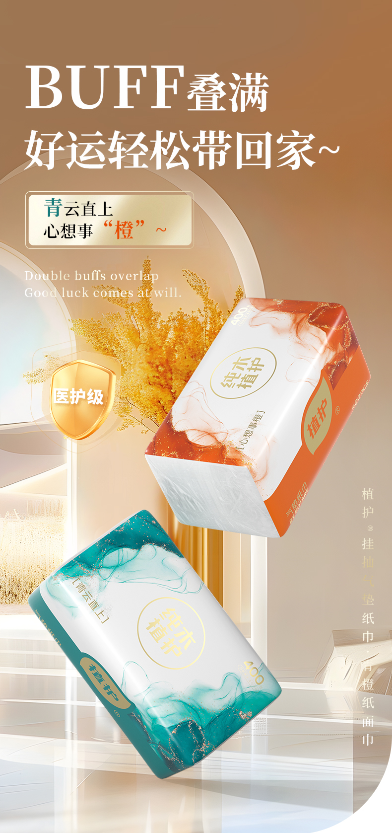 植护气垫抽纸大包家用实惠装餐巾纸整箱批家面巾擦手厕纸卫生纸巾 8包