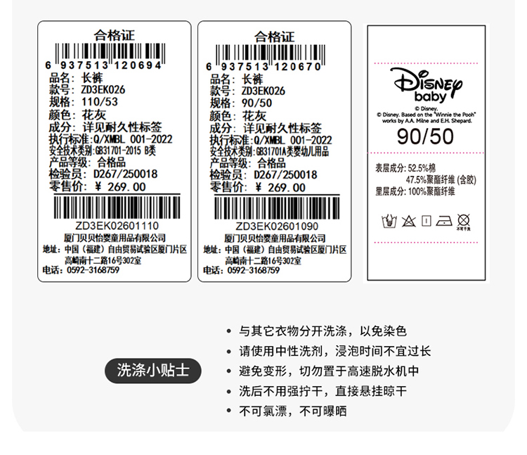 迪士尼宝宝男女童春秋长裤ZD3EK026