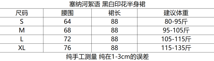 【品名】茱莉缇JURLIEDI 塞纳河絮语 黑白印花半身裙 轻盈透气 丝滑柔软 【规格】黑白印花 【尺码】S-XL 【产地】国内 【材质】聚酯纤维100% 【发货包装】独立包装袋 【发货地】广州 【发货快递】圆通 【不发货区域】港澳台 【发货时效】48-72小时,周末节假日顺延 |