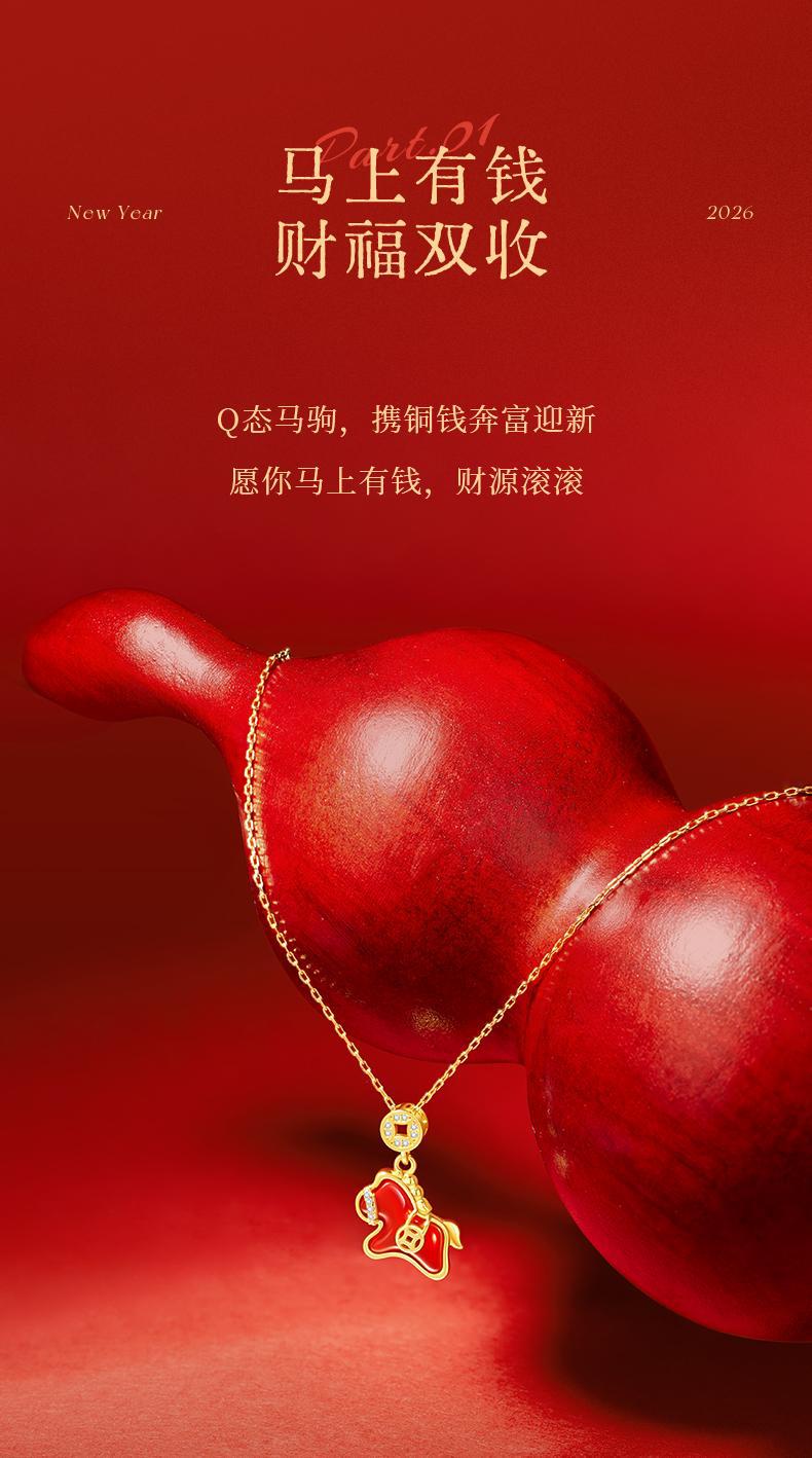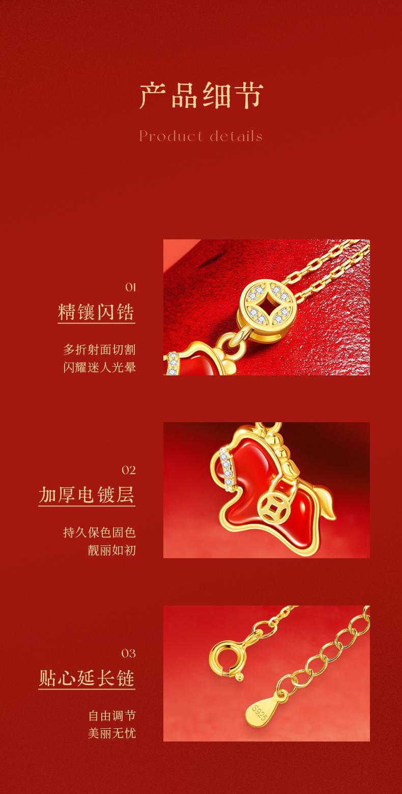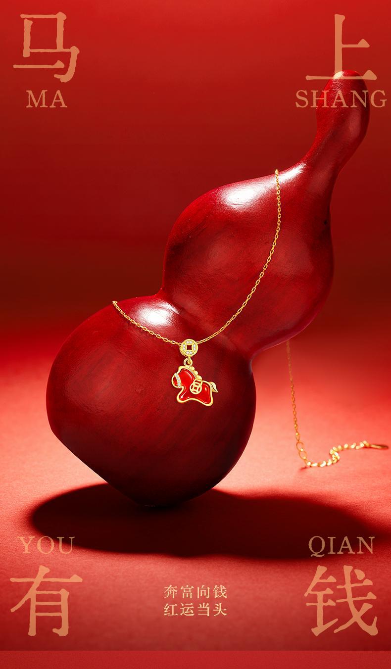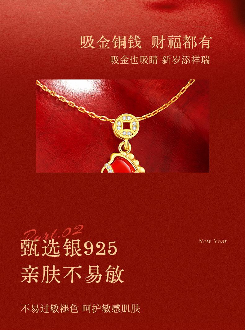 六鑫珠宝 马上有钱S925银钱马项链轻奢新中式红玛瑙本命年吊坠 马年礼物