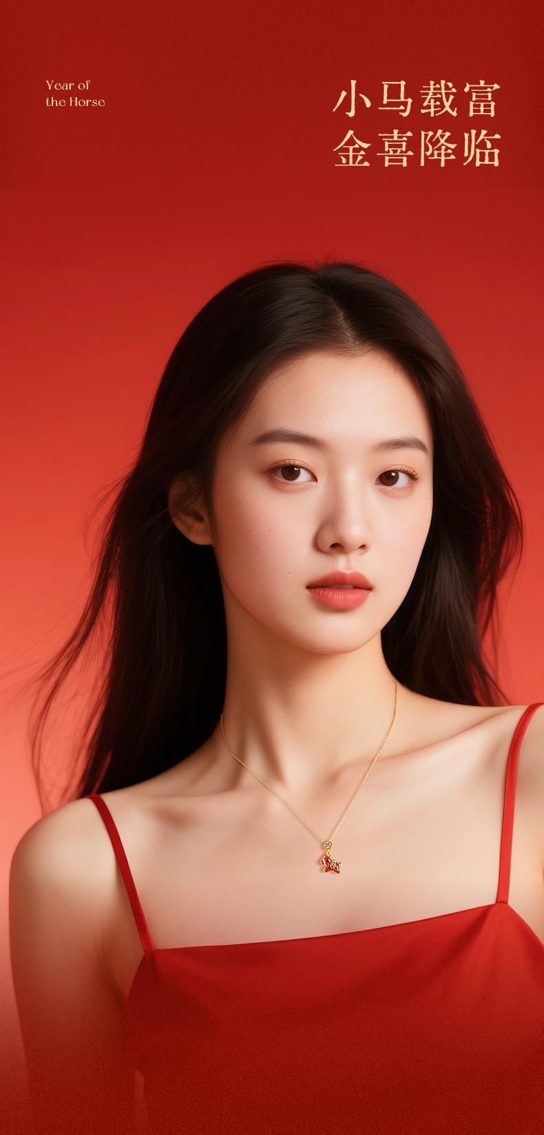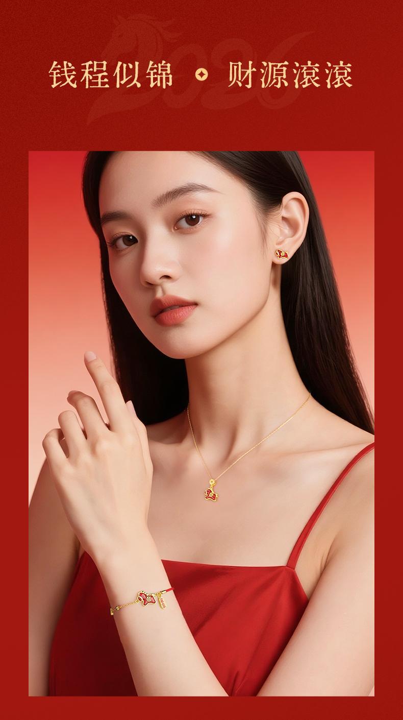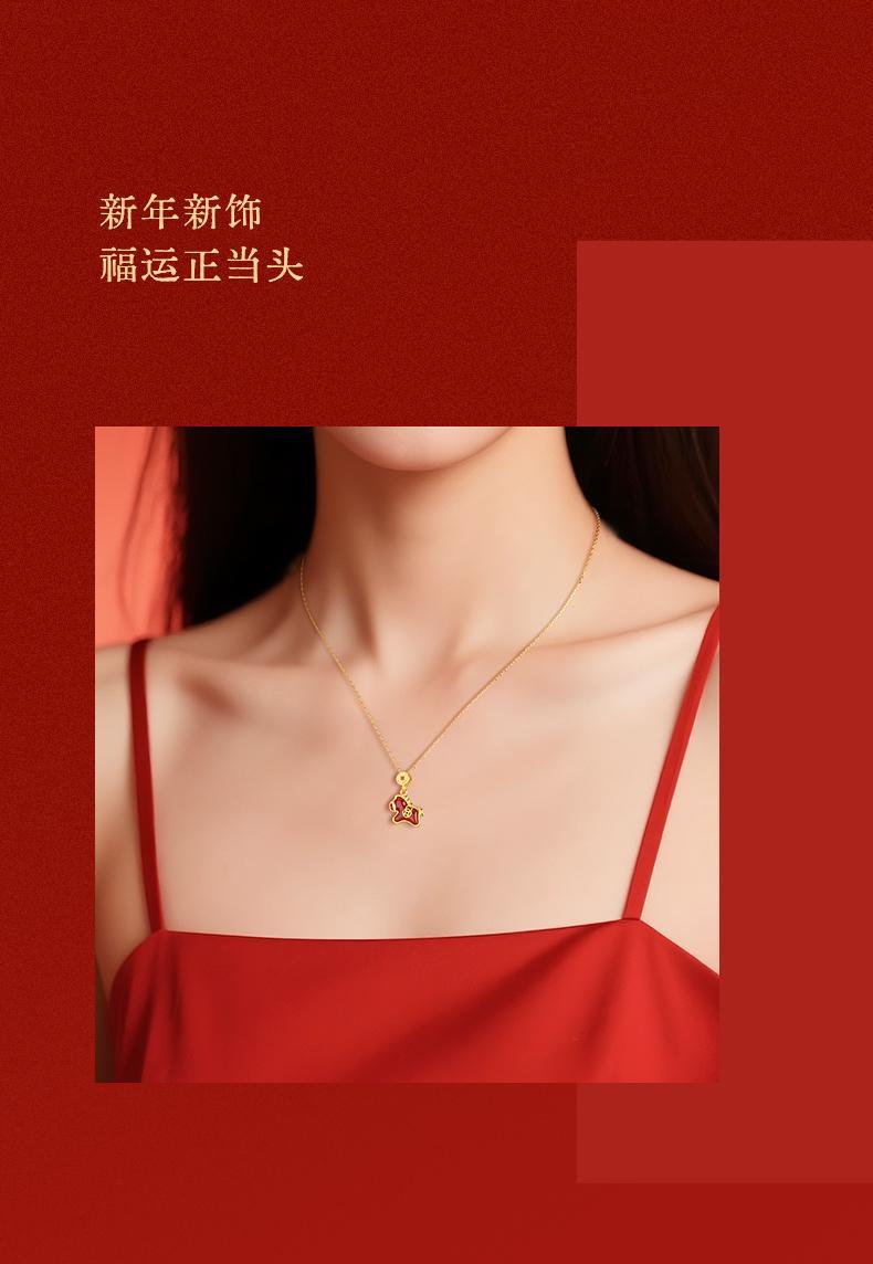 六鑫珠宝 马上有钱S925银钱马项链轻奢新中式红玛瑙本命年吊坠 马年礼物