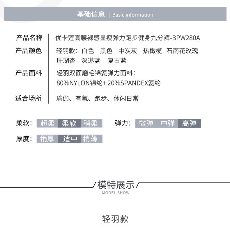 优卡莲高腰轻羽BPW280A健身裤女显瘦弹力紧身瑜伽裤运动9分裤外穿