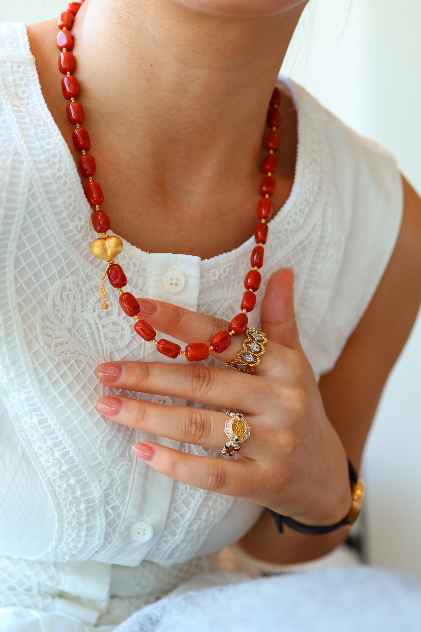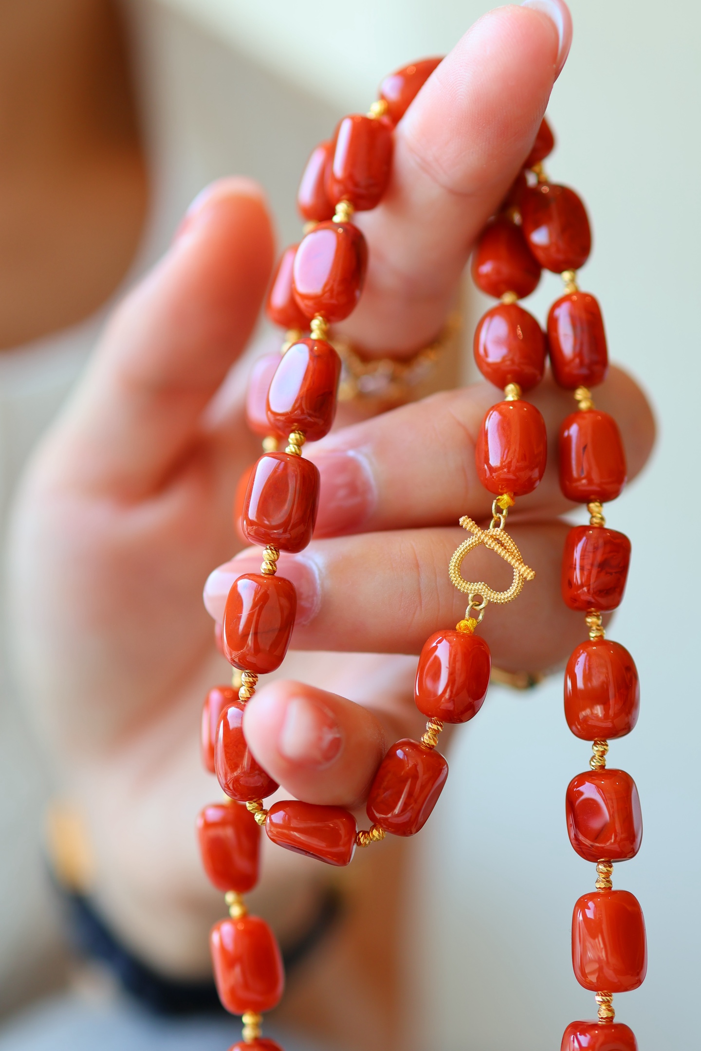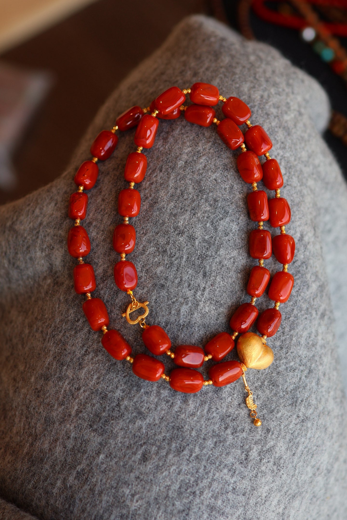 天然川料火焰纹随型项链,通体18k重金设计搭配。颗颗精选,无黑线,规格卡8mm左右。很时尚的设计,配18k金屁桃爱心配饰,重约45克,周长53cm。很高级呦~快入冬了!毛衣链安排起来~