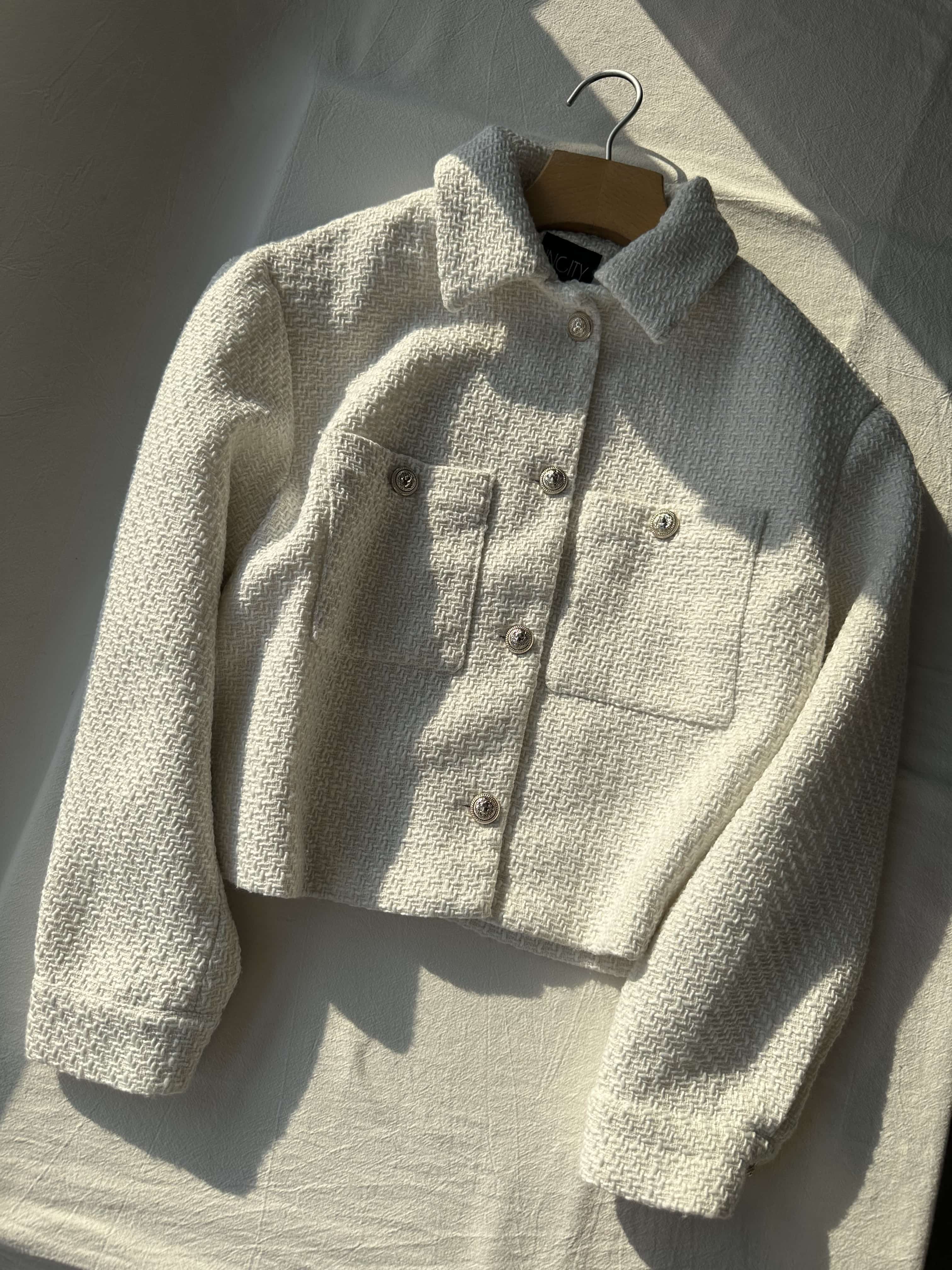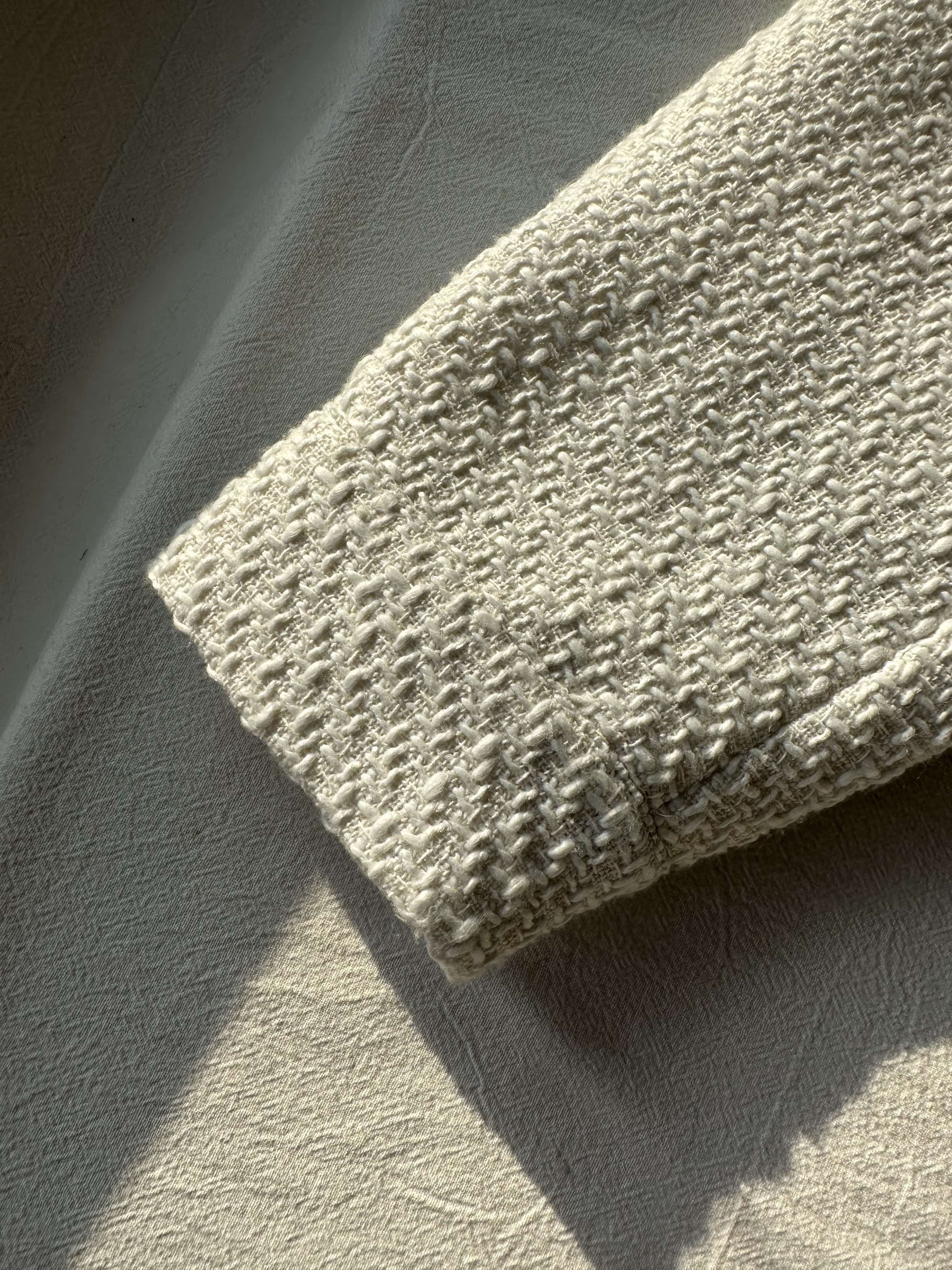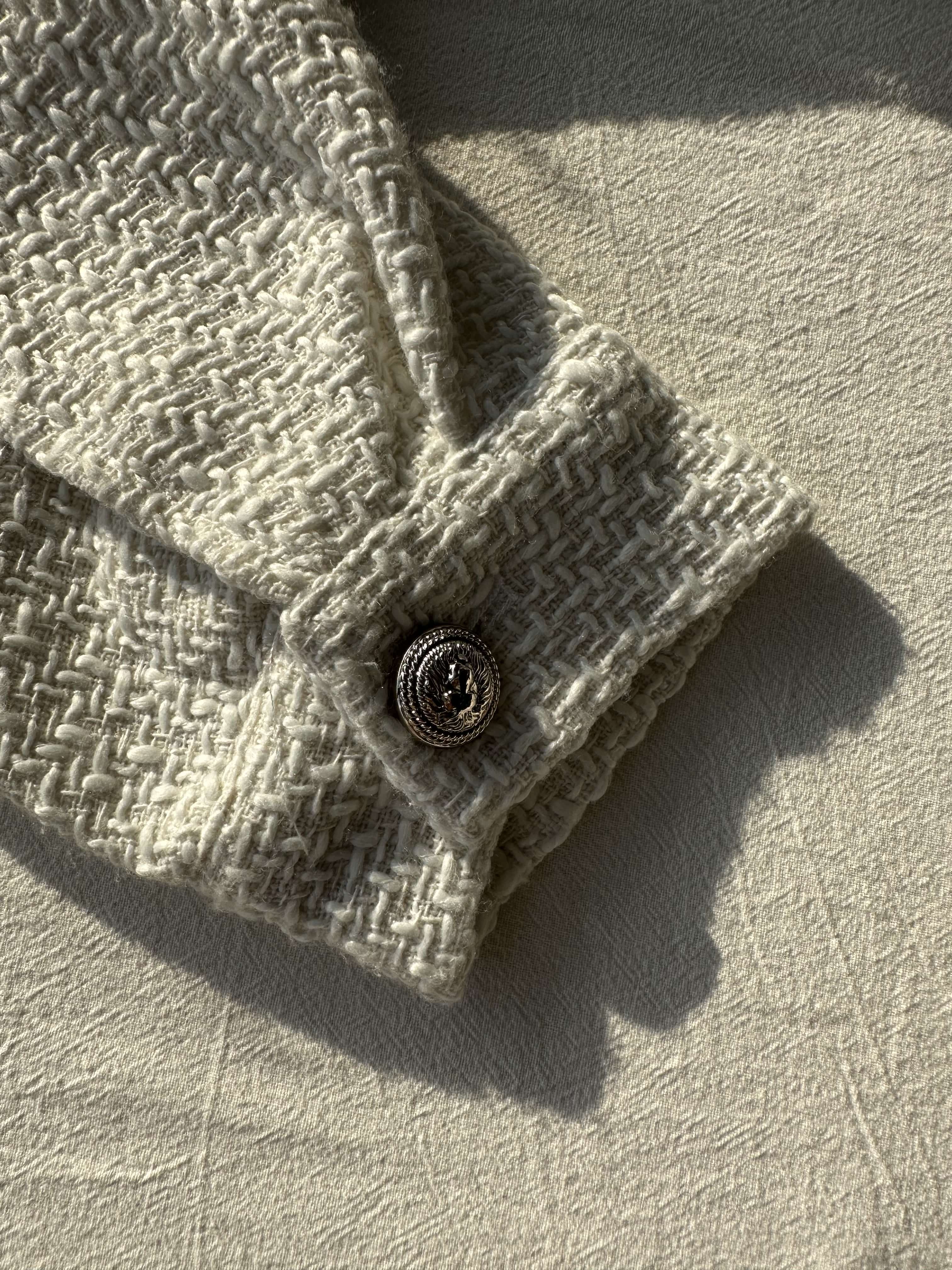 贝壳三 小香风编织肌理感双口袋外套气质翻领短款上衣C110817
