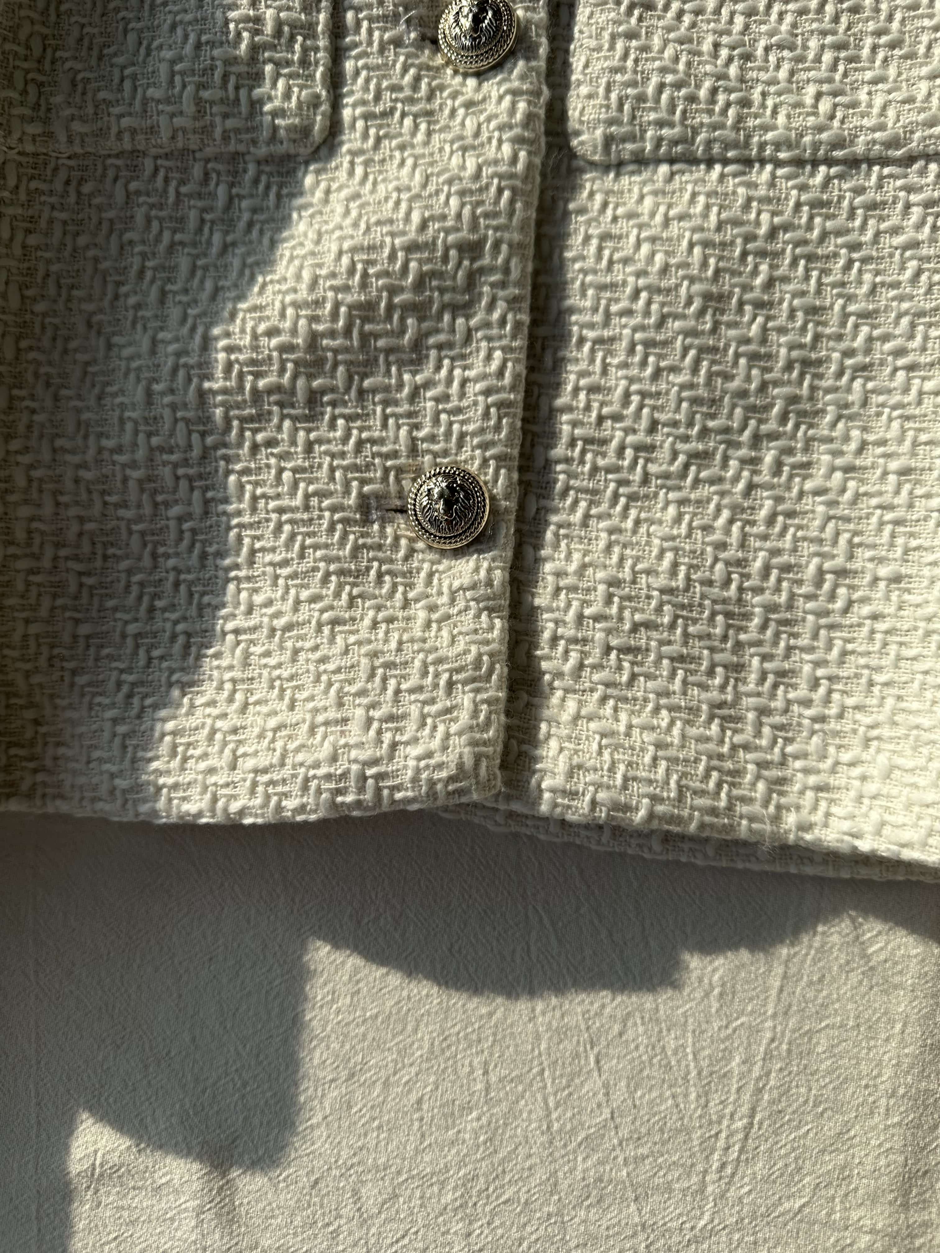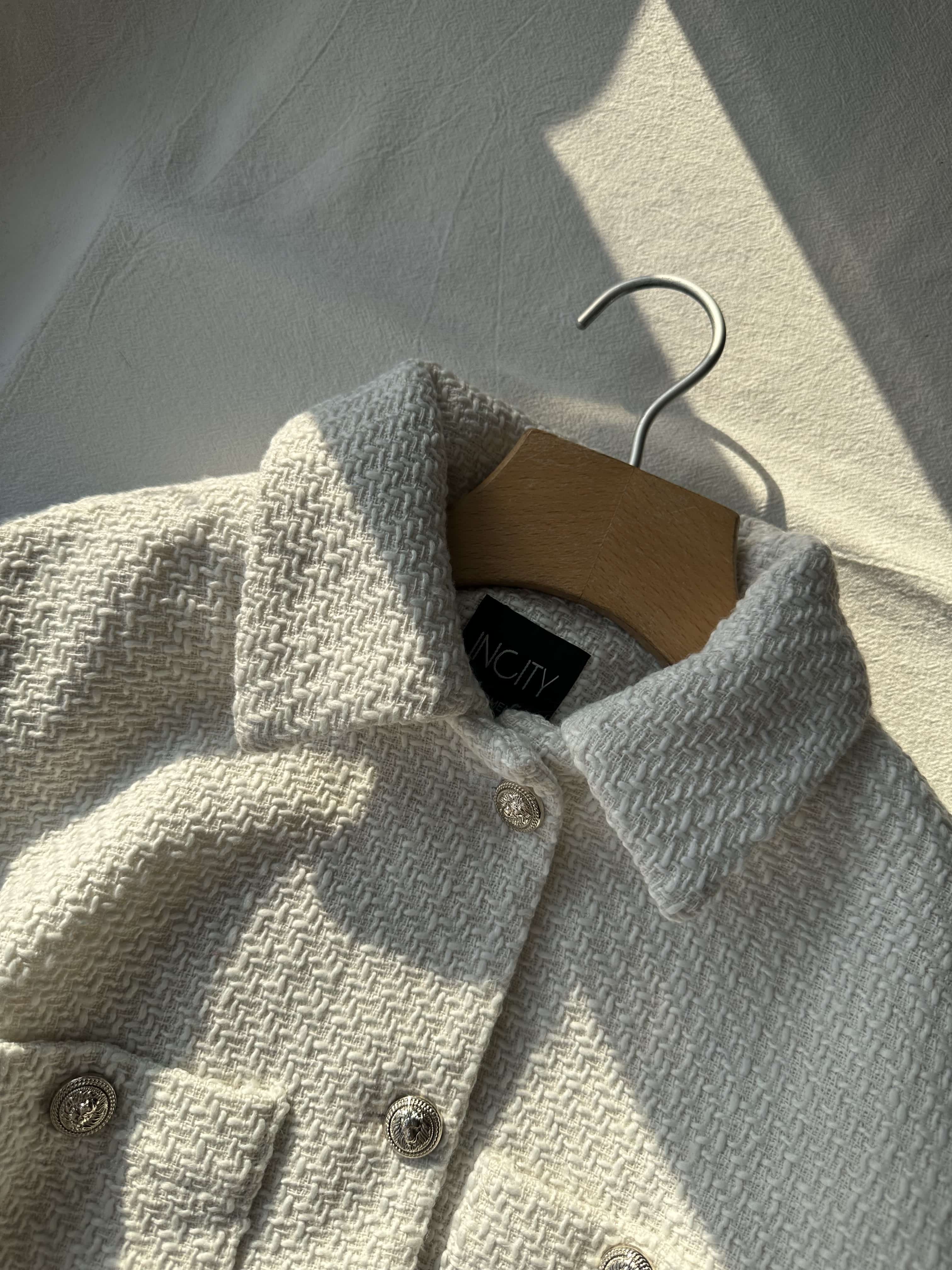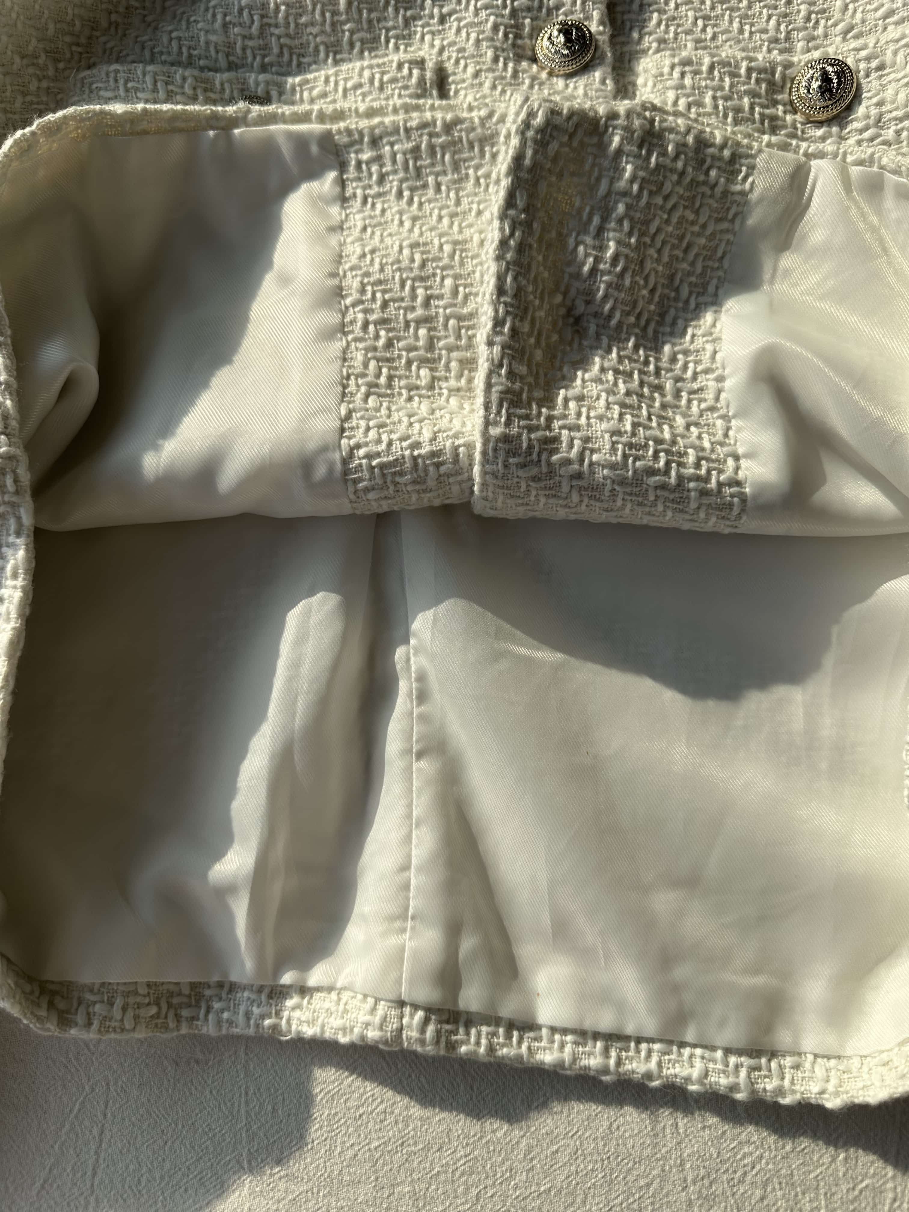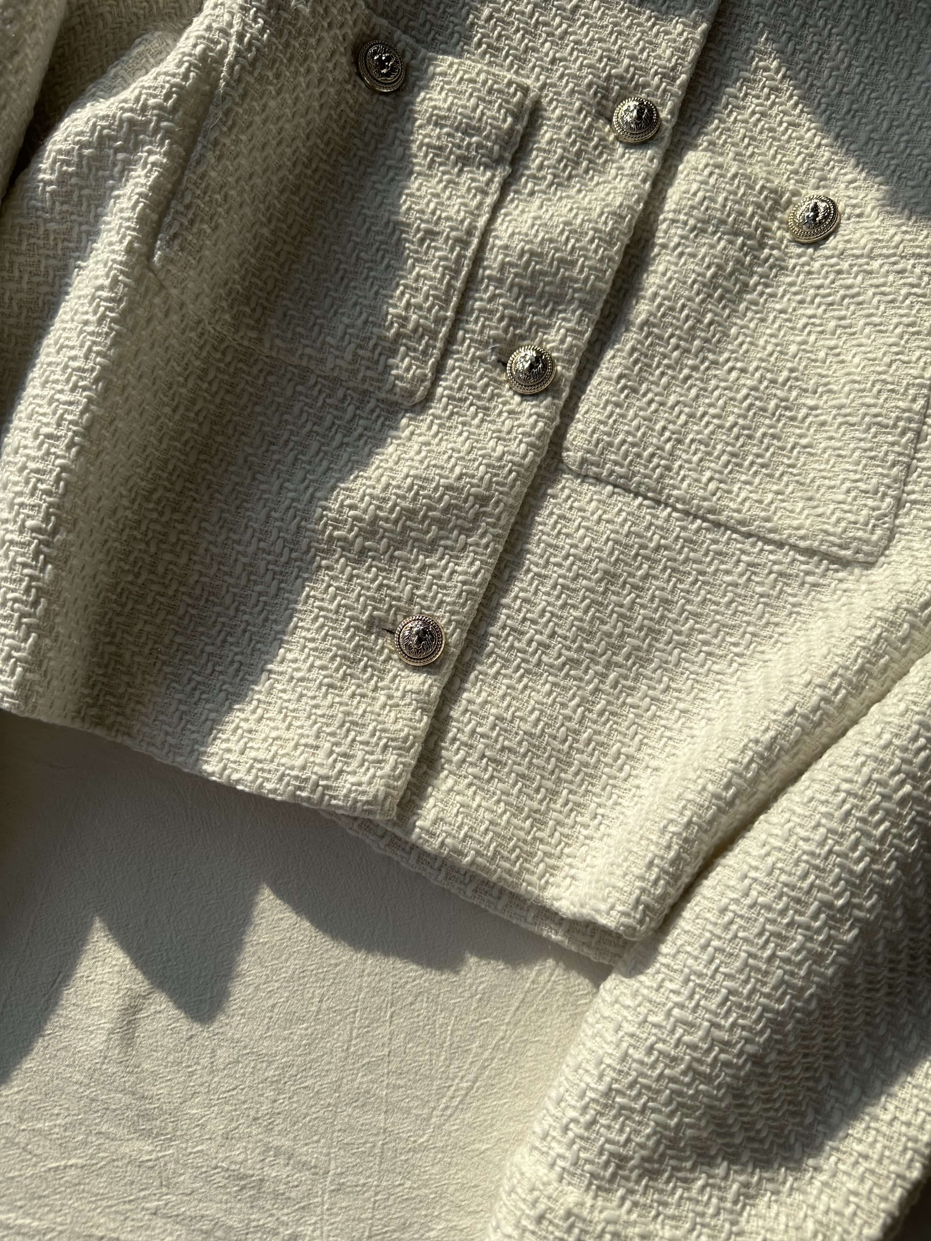 贝壳三 小香风编织肌理感双口袋外套气质翻领短款上衣C110817