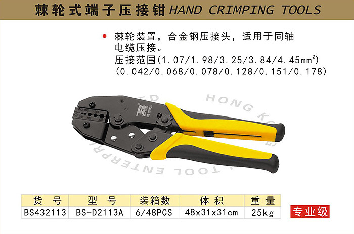 波斯 棘轮式端子压接钳 适用于同轴电缆压接 1.07-4.45mm² BS432113