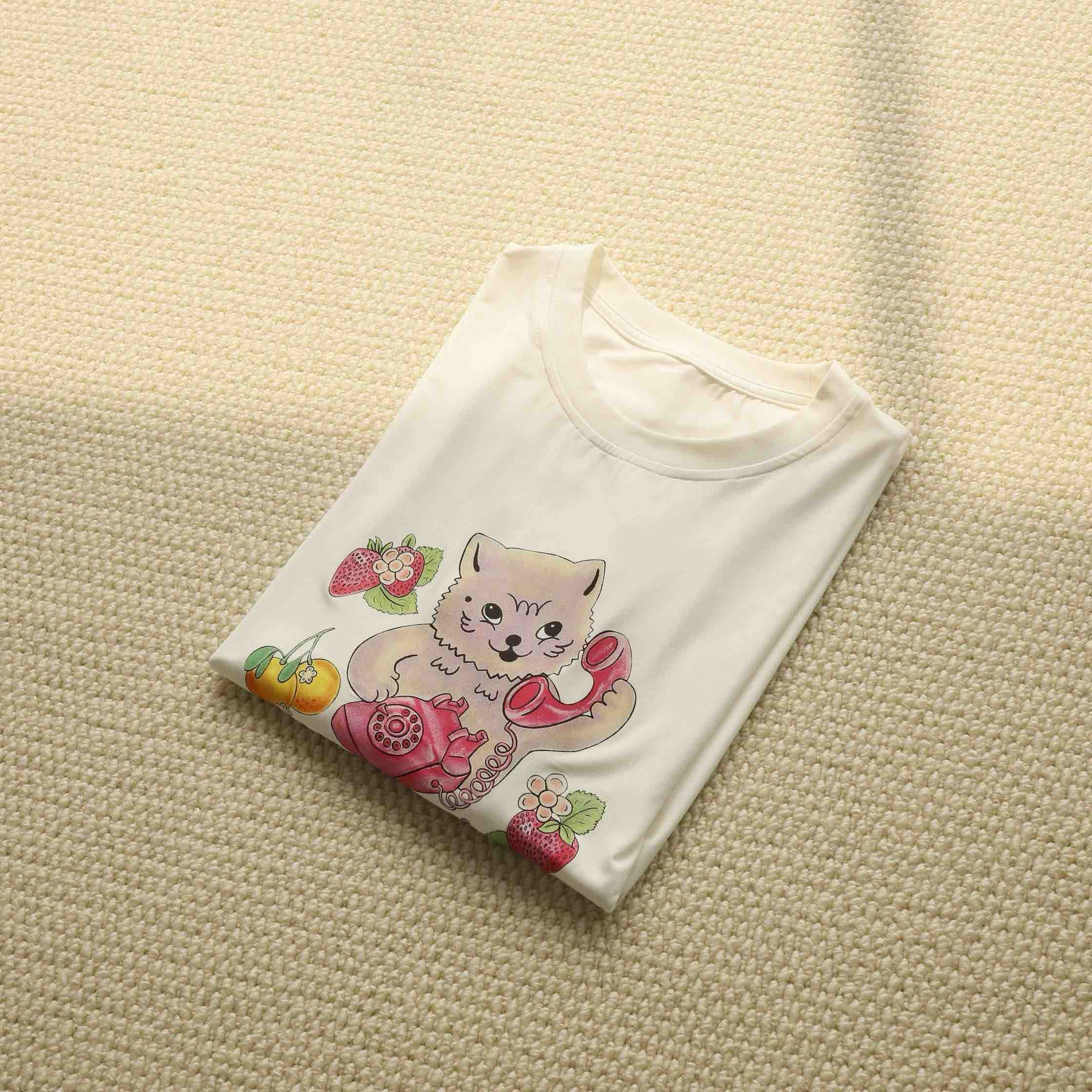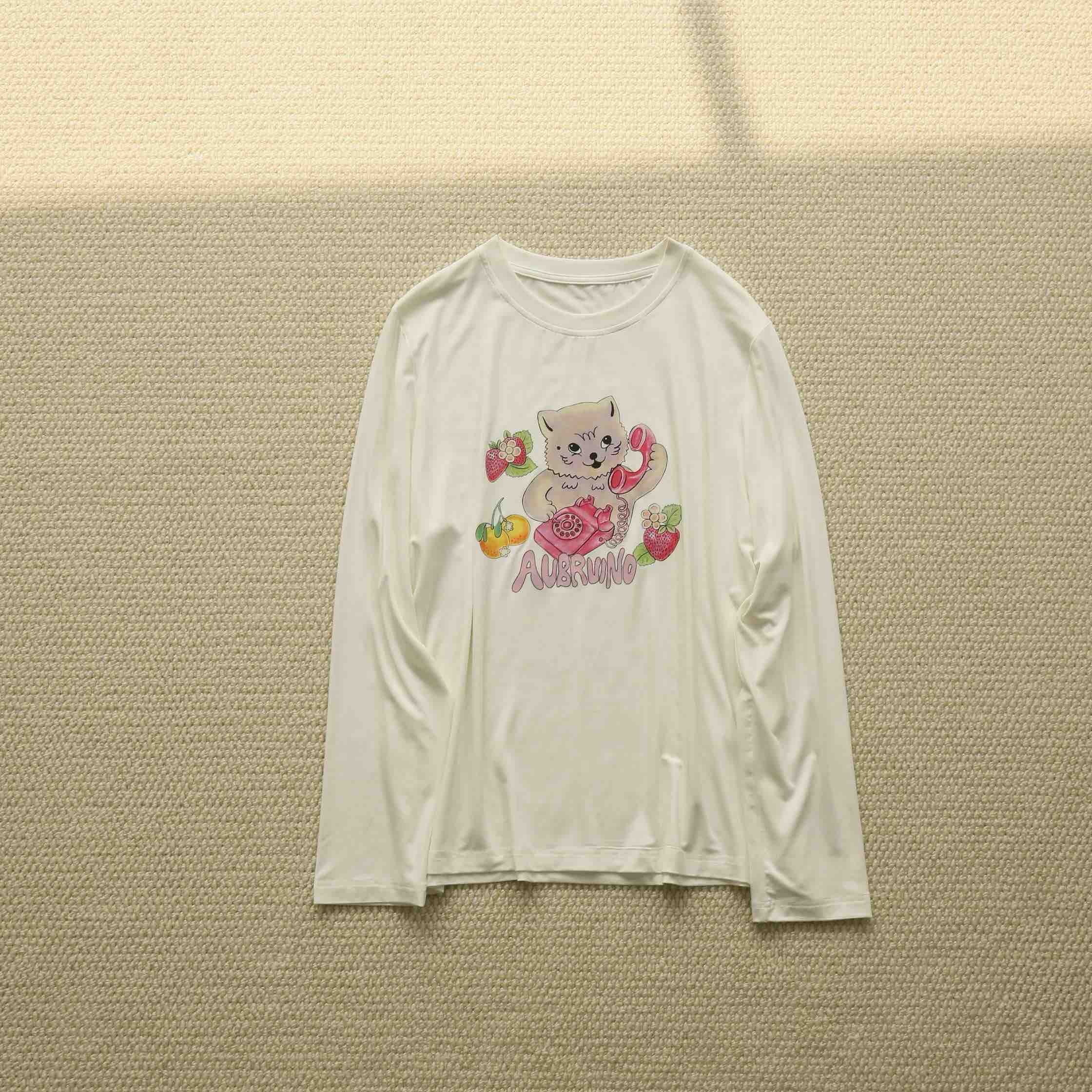 【2月21日 上午12:30 秒杀】莫代尔T恤 设计师品牌 围绕“Call me”而诞生的猫咪印花图案趣味长袖T