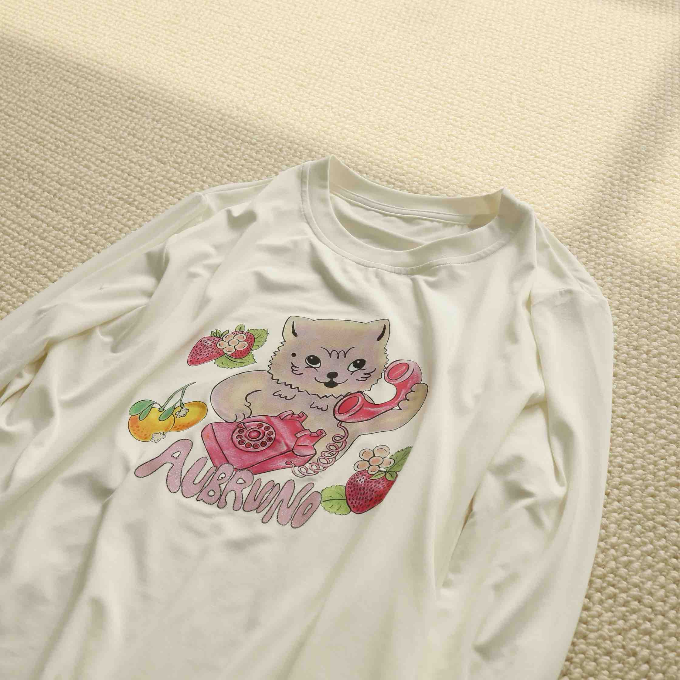 围绕"Call me"而诞生的猫咪印花图案趣味长袖T