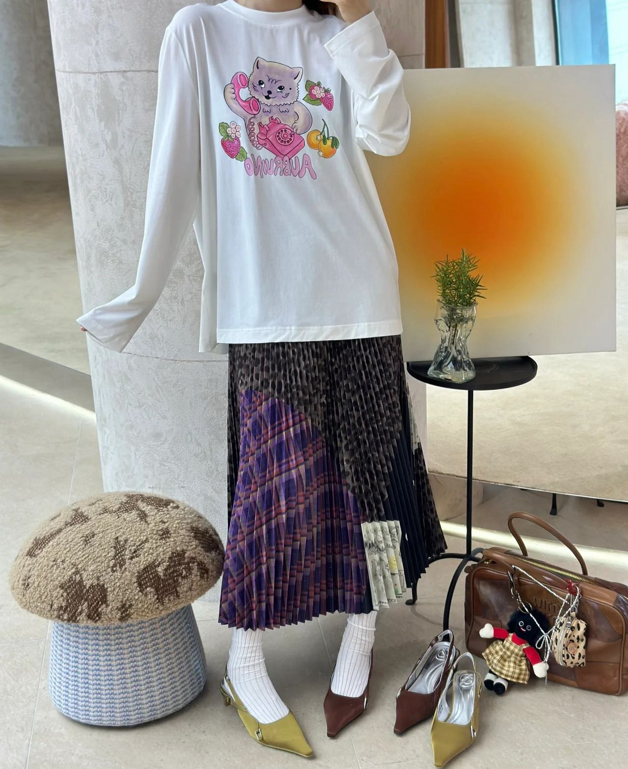 胸前的猫咪印花是神来之笔,活灵活现,仿佛下一秒就要"喵"一声跳出来了