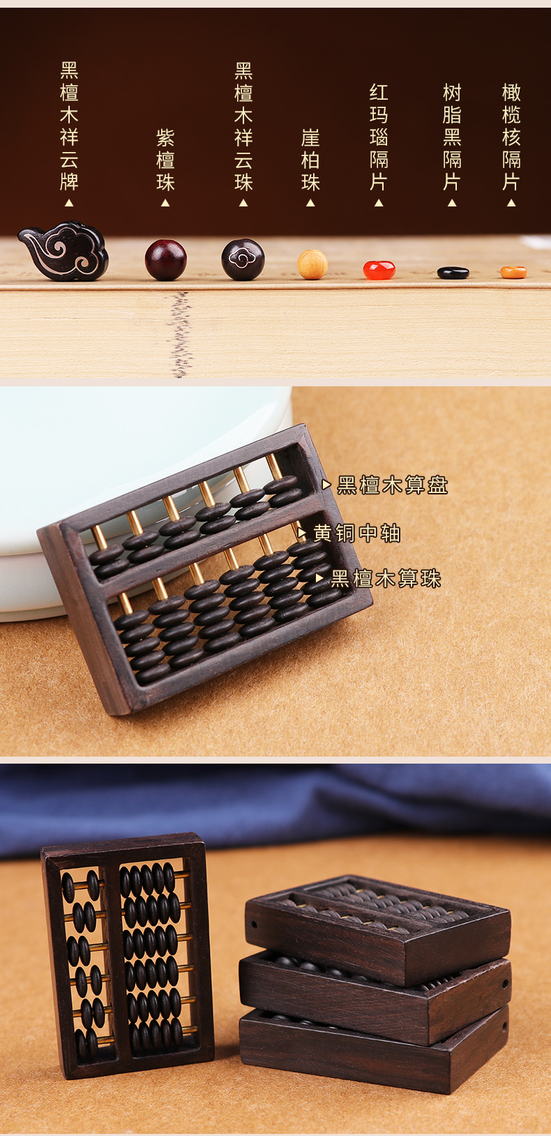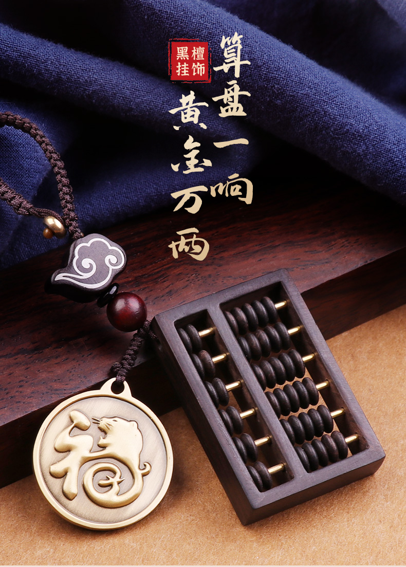 【十二生肖黑檀木祥云算盘挂饰】