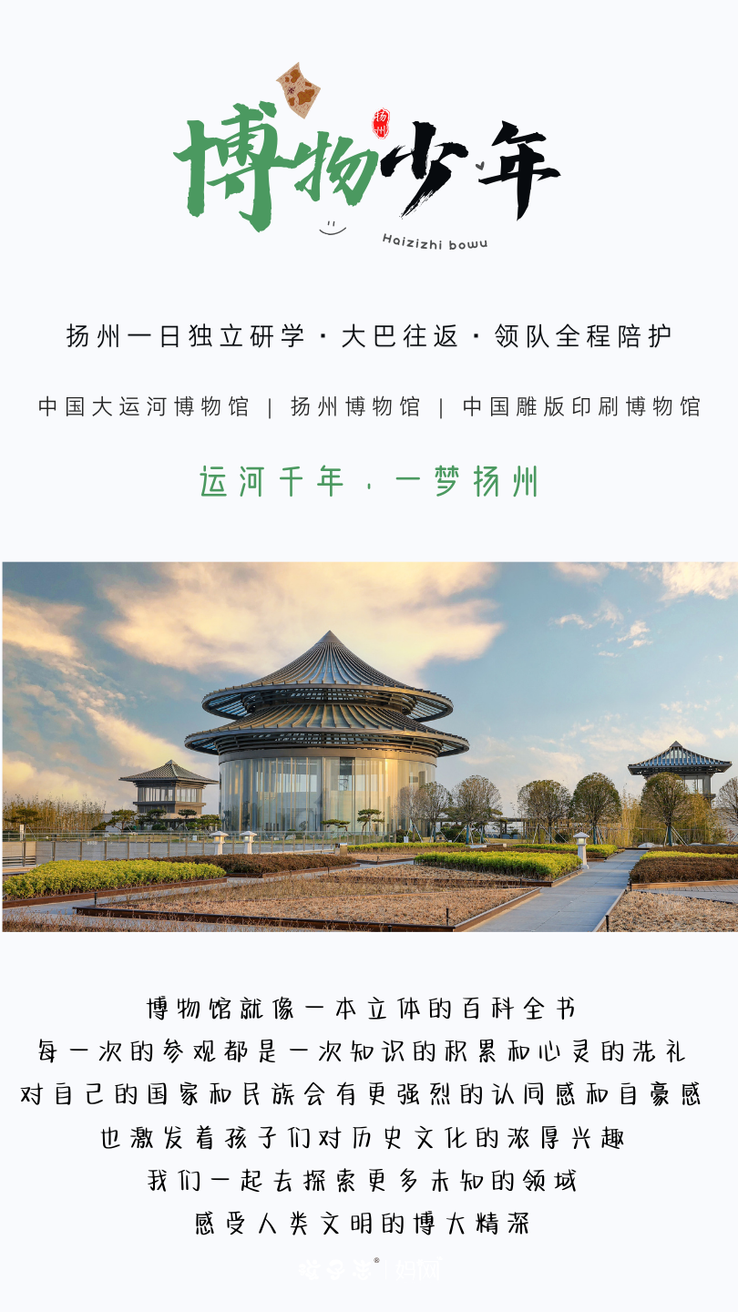 孩子志 | 扬州博物少年 7/20(周六) 1日研学营 独立/陪同【会员价】中国大运河博物馆+扬州博物馆+中国雕版印刷博物馆