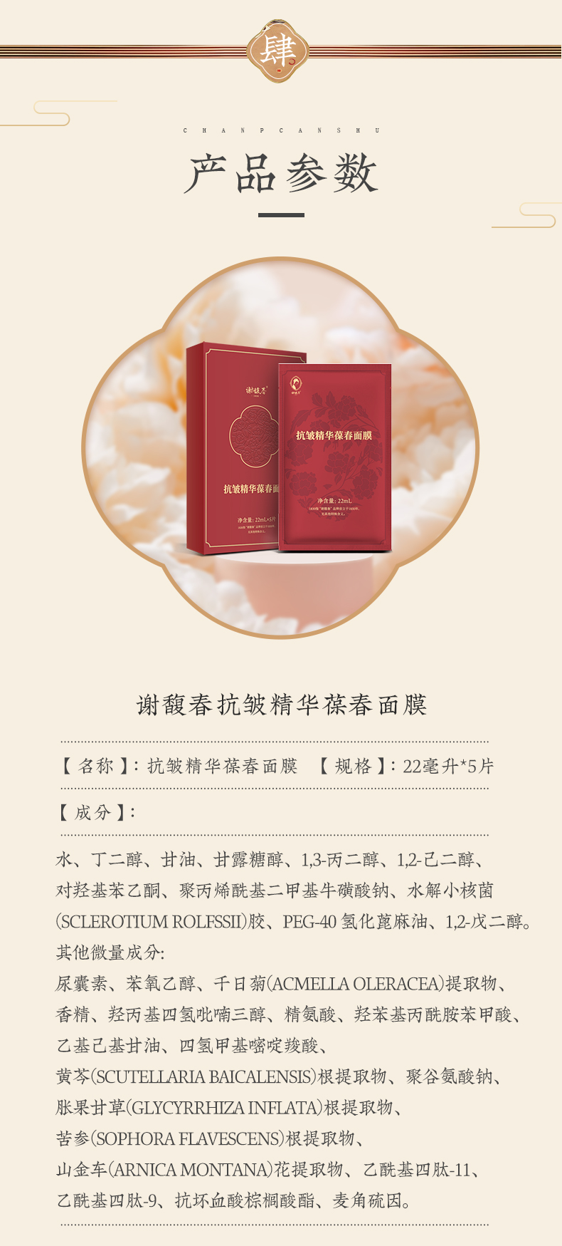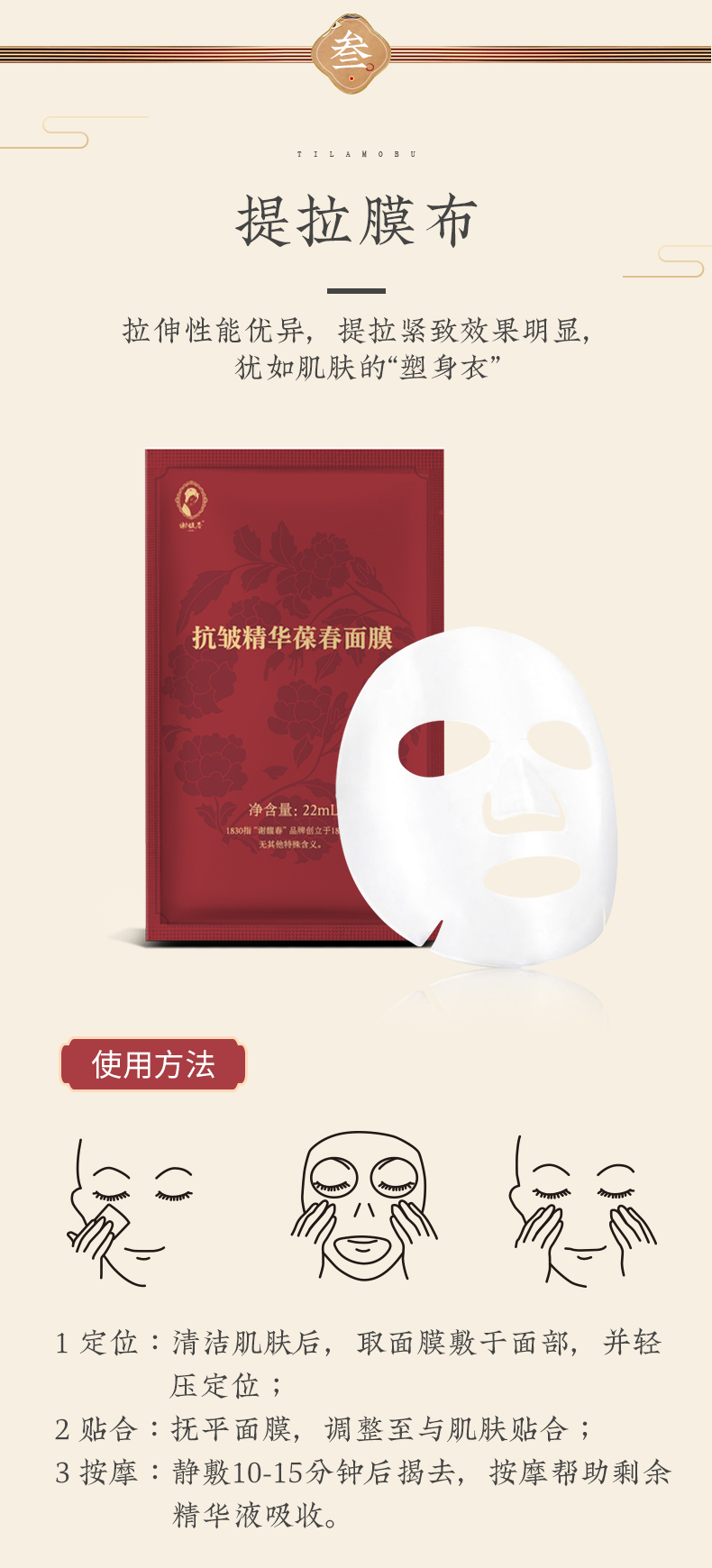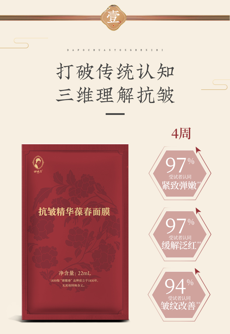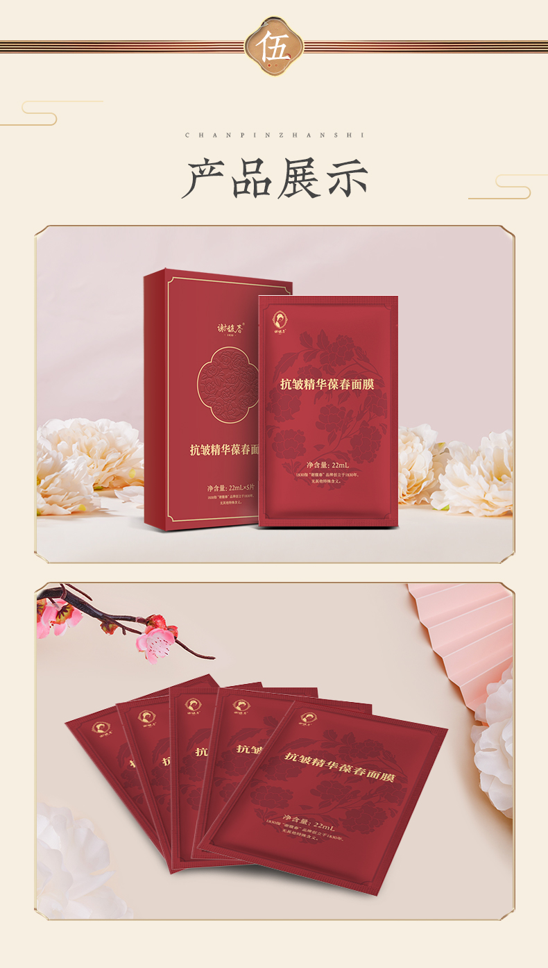 【拍同款,买三送一】抗皱精华葆春面膜 5片装 保湿、舒缓、紧致