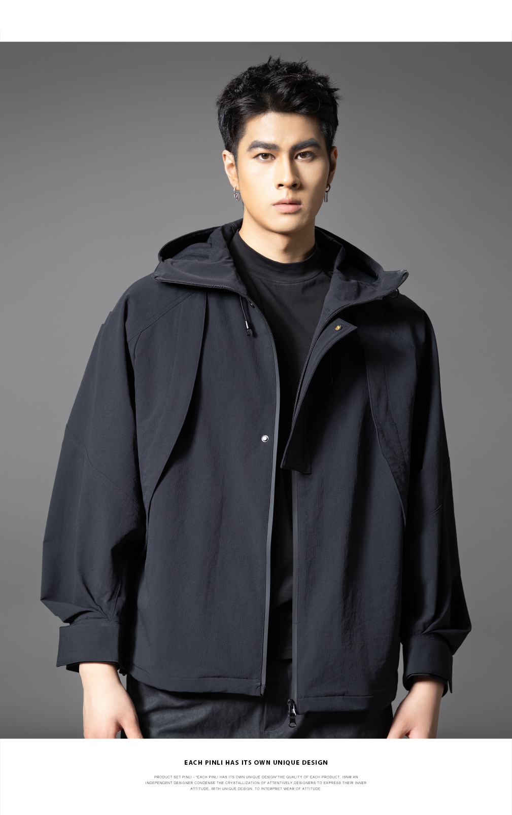 PINLI品立2025秋季新款男士宽松连帽休闲夹克工装茄克外套上衣潮GD253104007