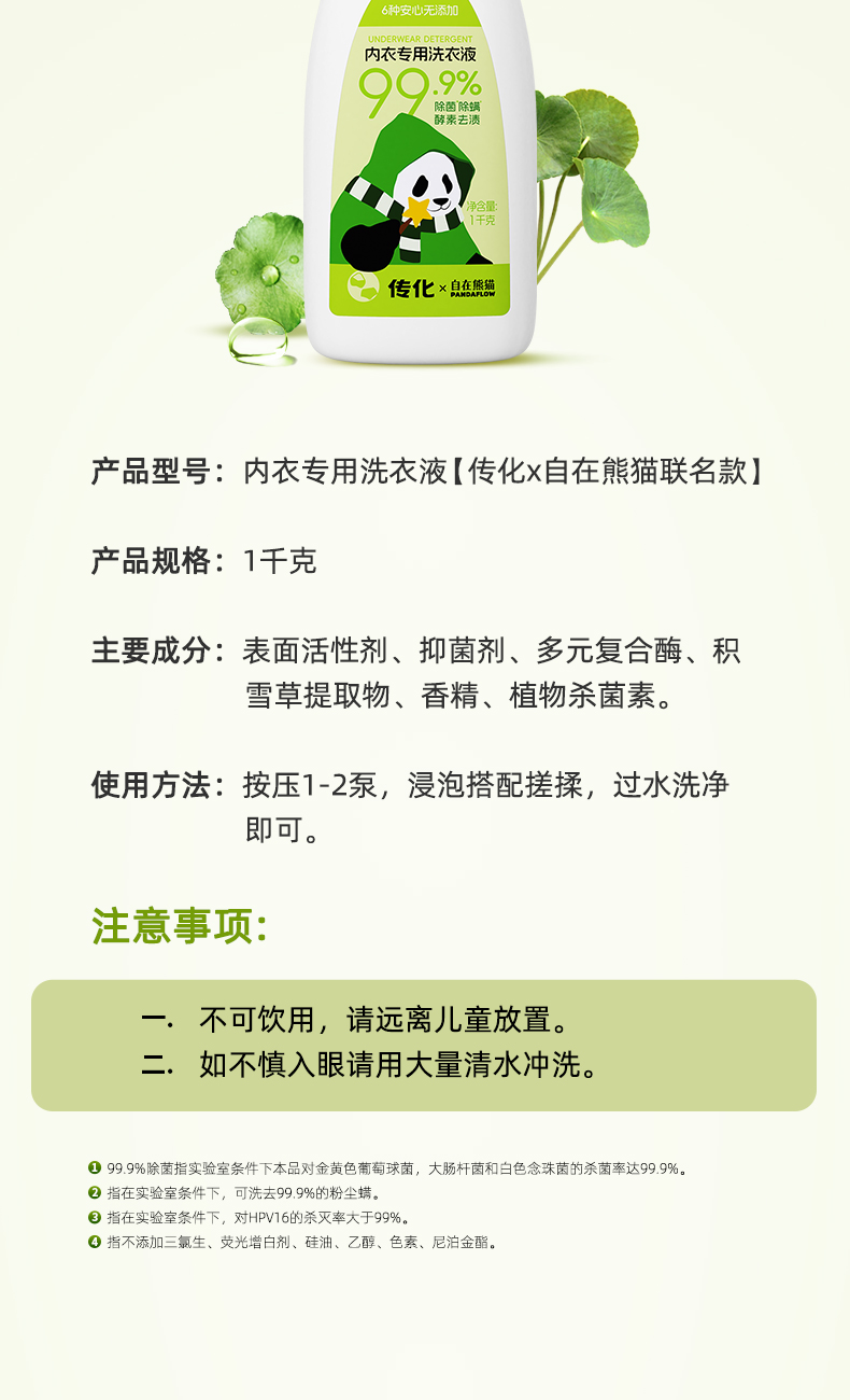 【联名款】传化x自在熊猫-内衣专用洗衣液1kg