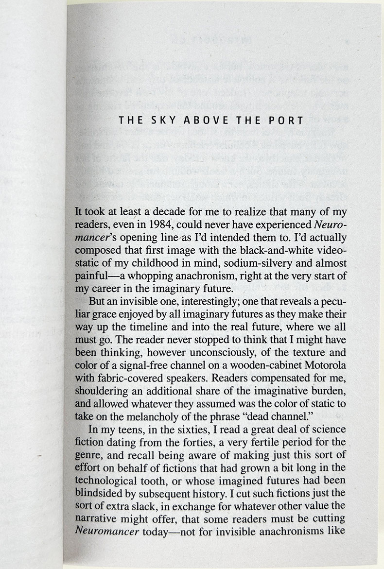“In with the ruthless violence, the hyperreality, the betrayal and death, is an unquenchable love of language. Gibson has that in common with Le Guin and with J. G. Ballard. Neuromancer sings to us as a collage of voices, a mixed chorus, some trustworthy and others malicious, some piped through masks.”