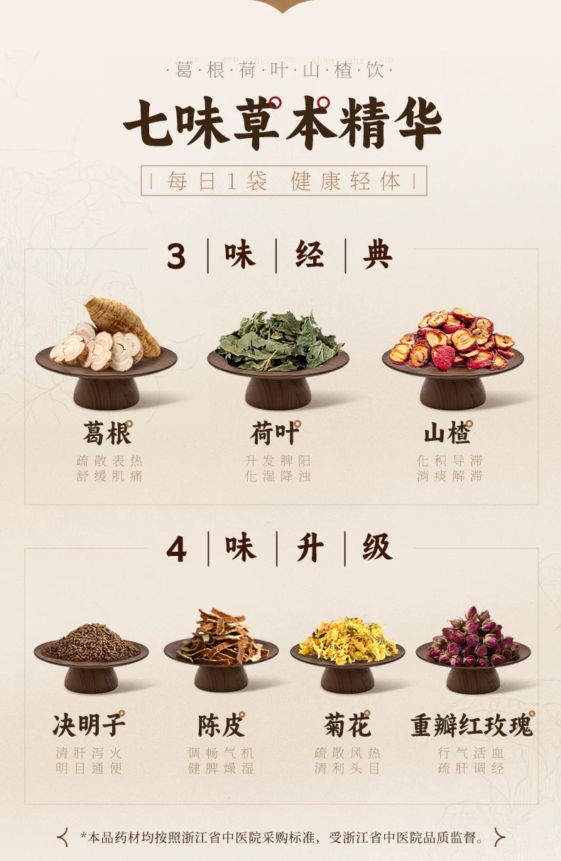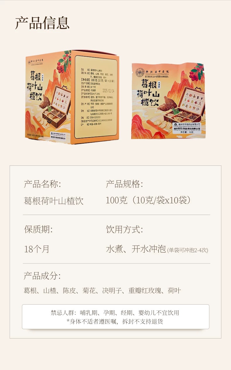 【浙江省中医院出品】葛根荷叶山楂饮茶包 养生茶