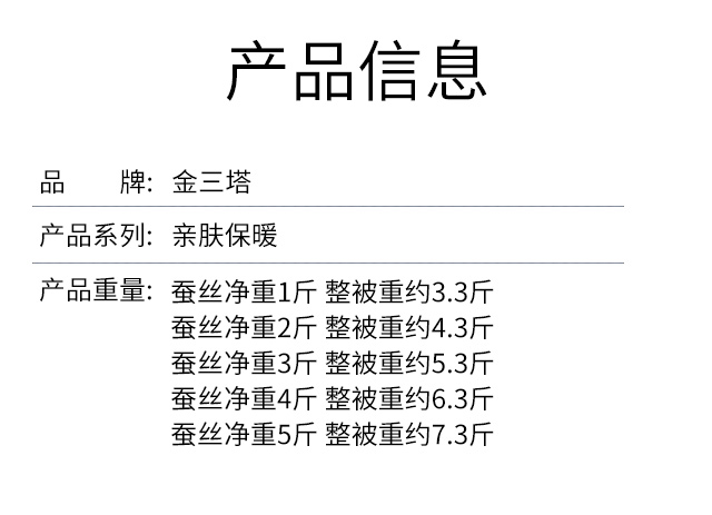 【桑蚕丝净重1斤】金三塔100%桑蚕丝蚕丝被 全棉胎布套(限价款) CSBC710