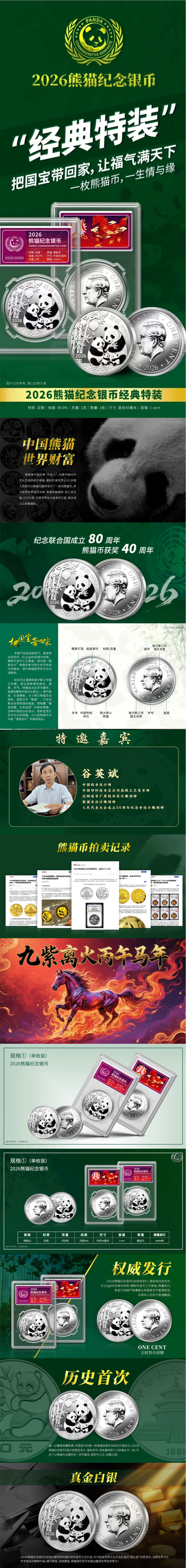 《2026熊猫纪念银币》 纽埃法定货币 含1克Ag999足银
