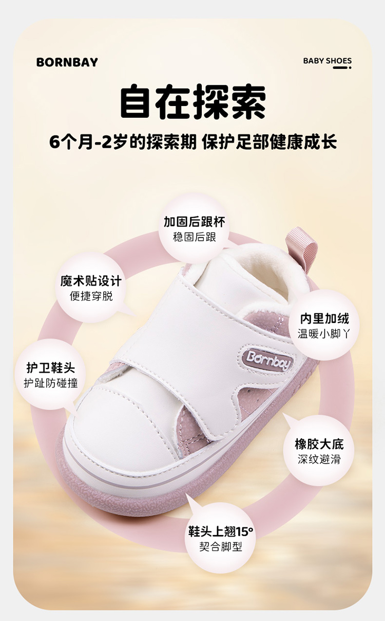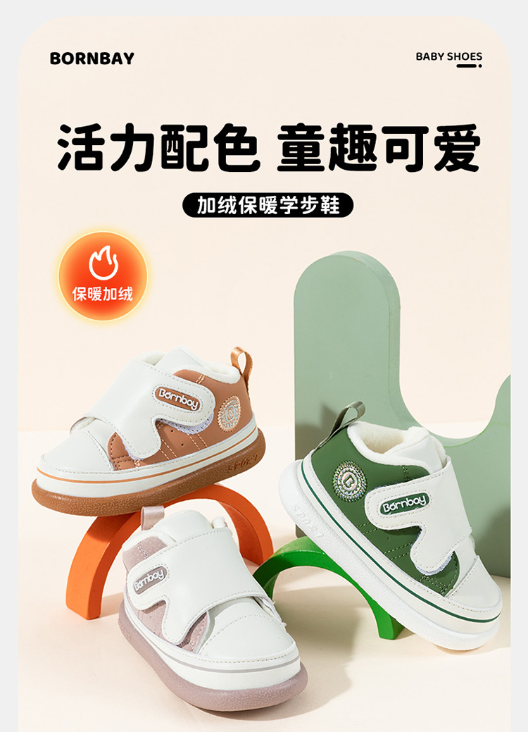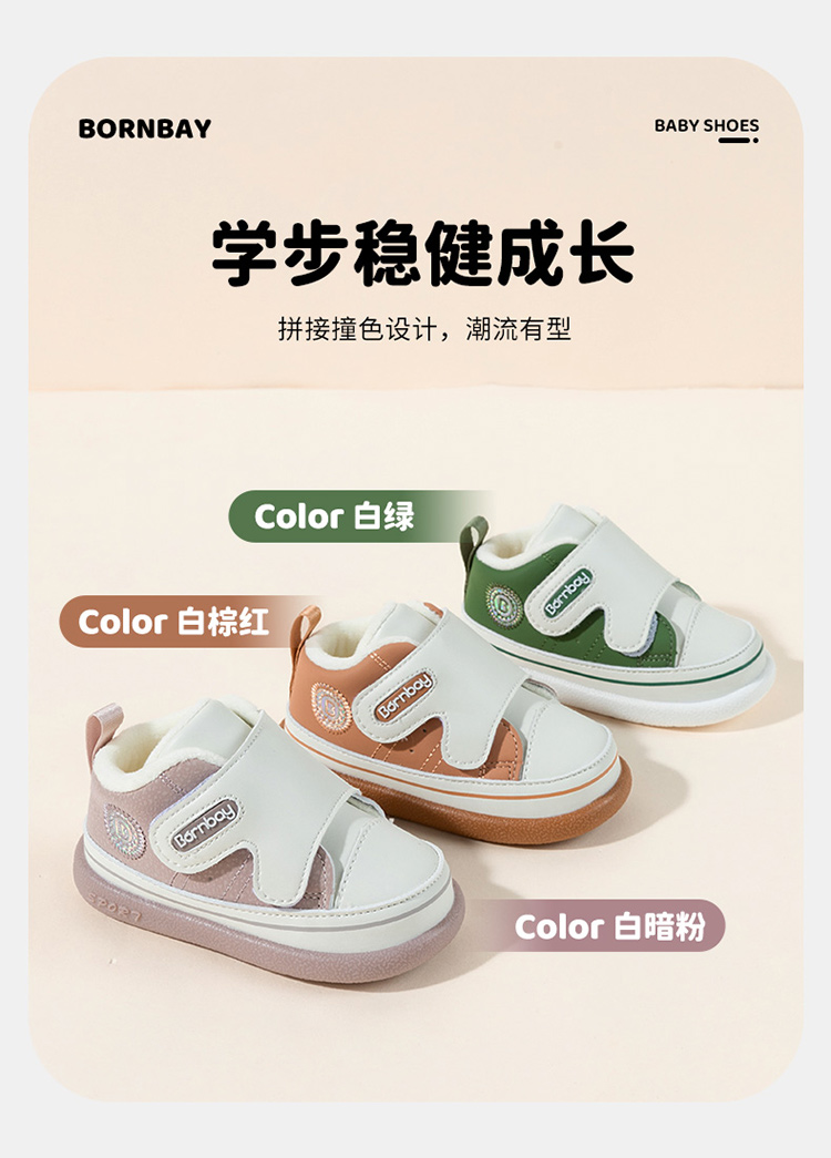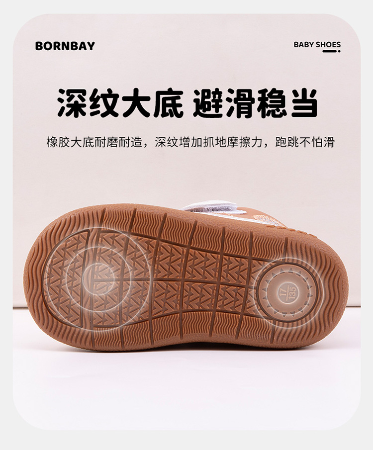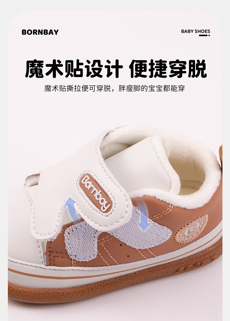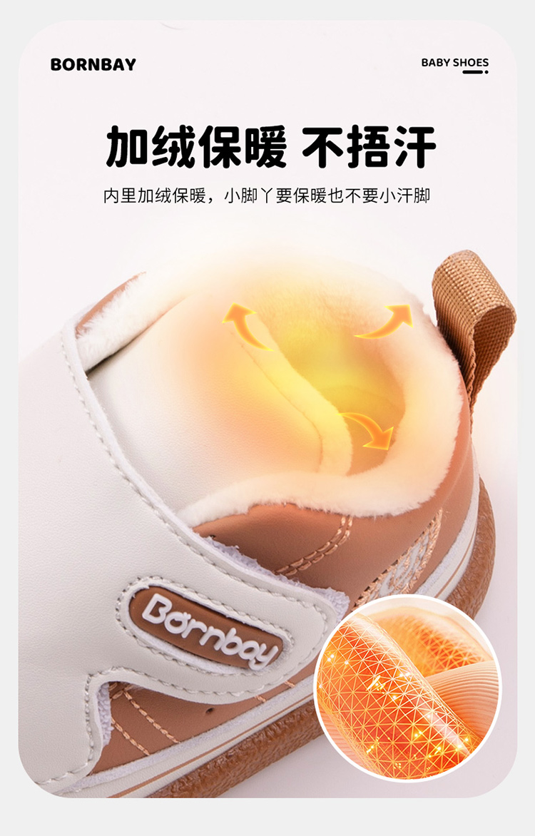 贝贝怡【加绒保暖】秋冬轻便防滑宝宝学步鞋舒适婴儿鞋子低帮魔术贴童鞋ZB4DX001