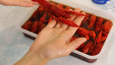 这样,小龙虾最脏的腮和肠就能被清理得干干净净,这是厨房用刷子洗做不到的。
