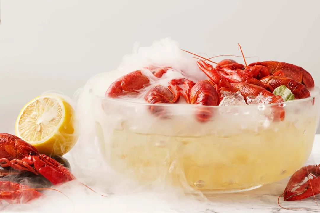近100℃的瞬时温差,不但能防止虾肉水分丧失,牢牢锁住虾肉的“弹”,也降低了微生物滋生风险。