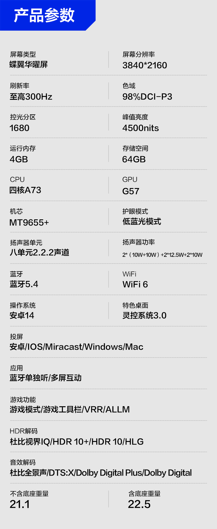 【FFALCON雷鸟】65鹤7 PRO 26款 65英寸 极景QD-MiniLED 蝶翼华曜屏 万象分区 平板电视机65R79A Pro