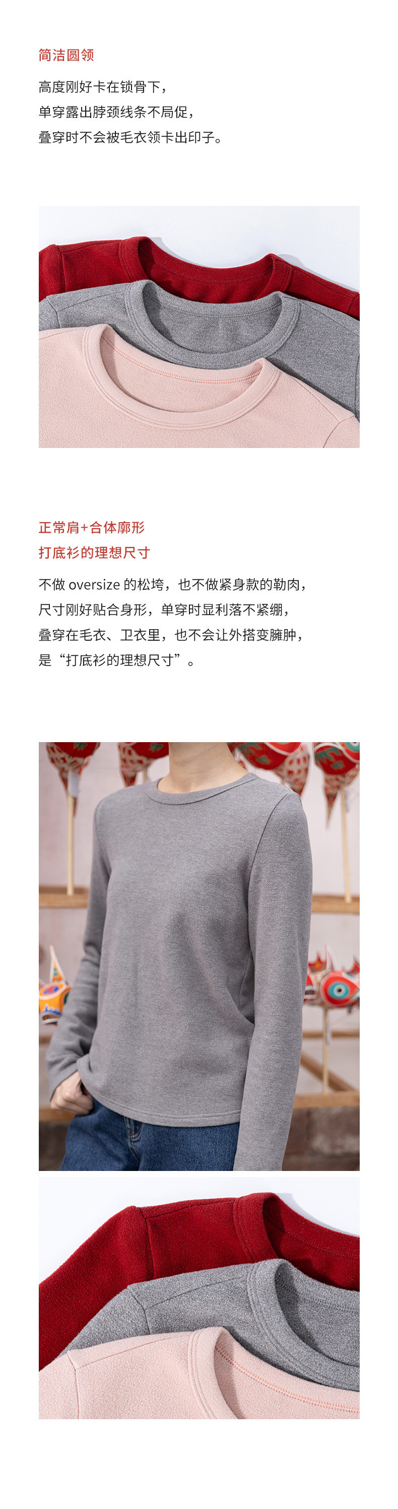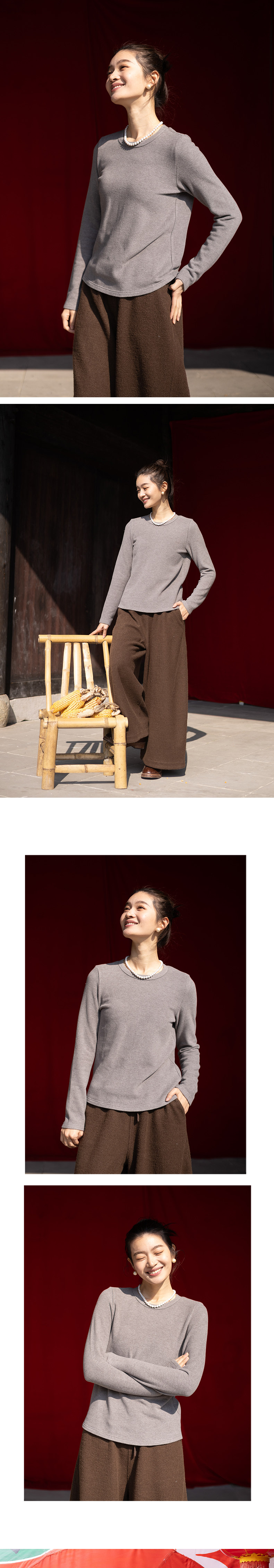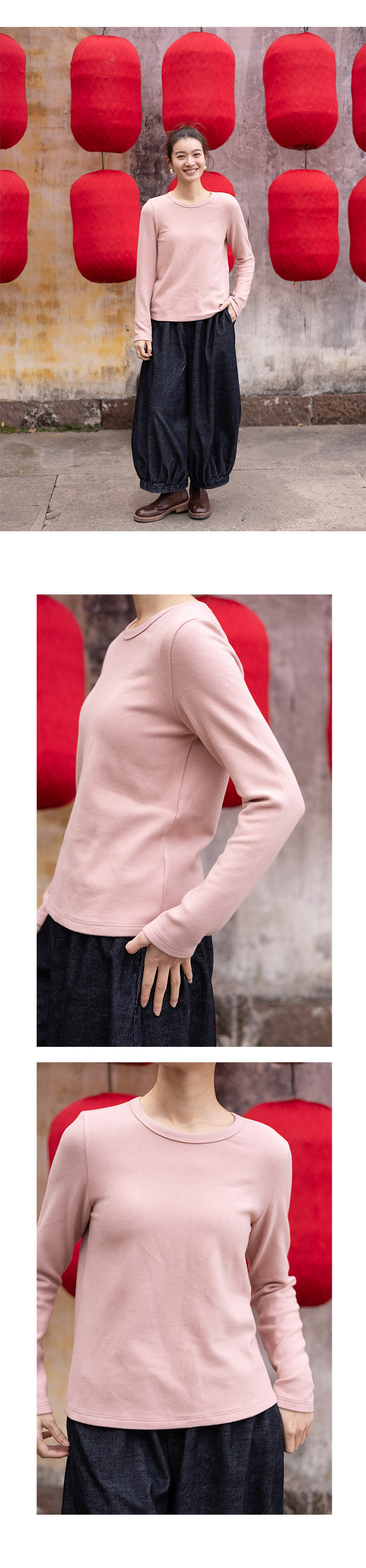 特绽放023朵/可靠双面绒T·双面德绒圆领正常肩长袖T恤显瘦打底衫
