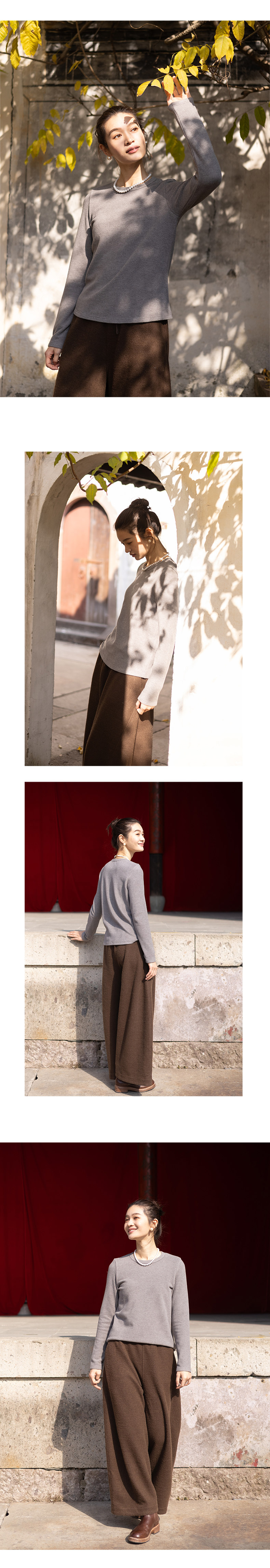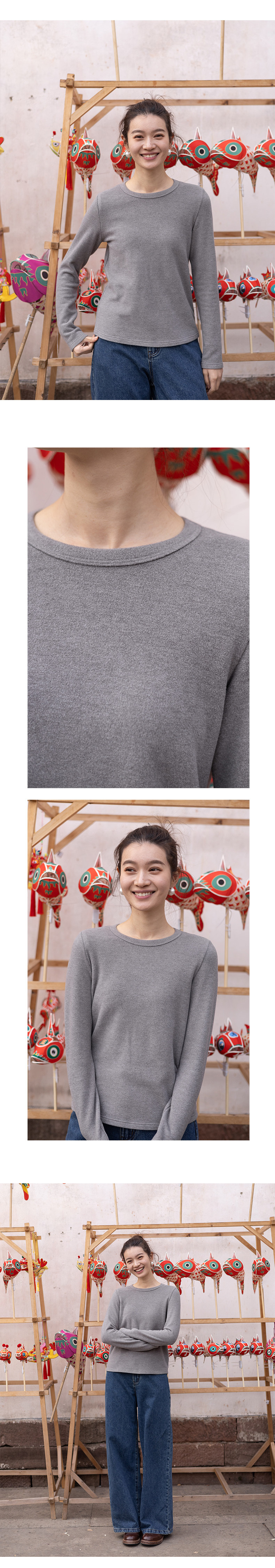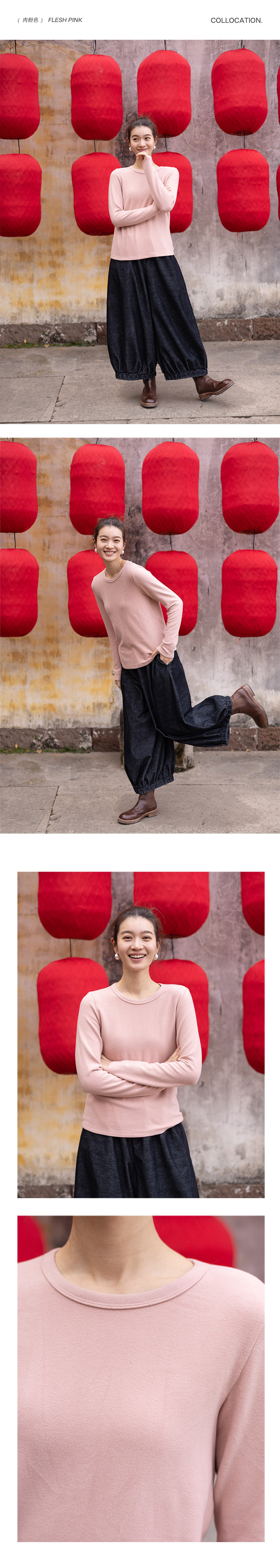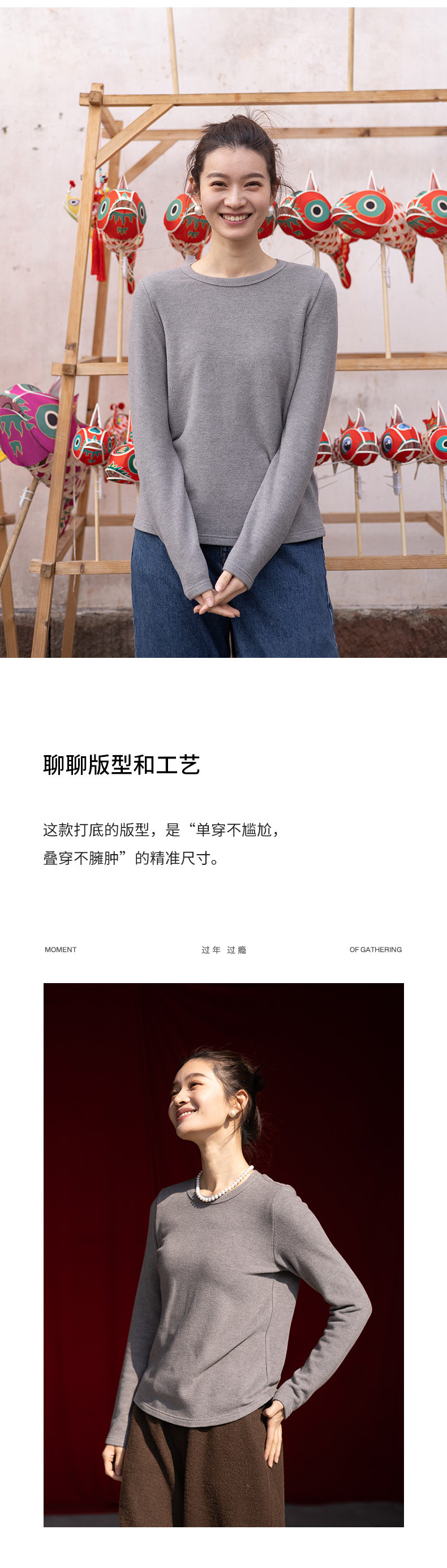 特绽放023朵/可靠双面绒T·双面德绒圆领正常肩长袖T恤显瘦打底衫