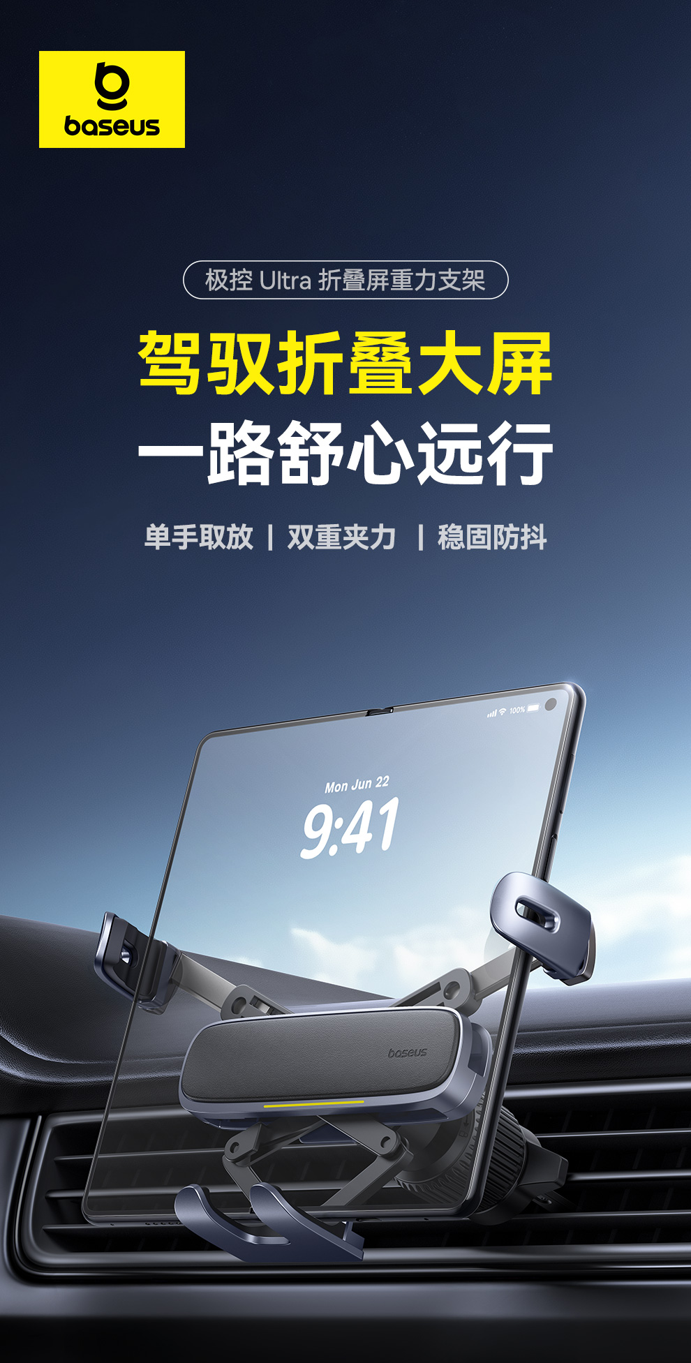 倍思 极控Ultra 折叠屏重力车载支架