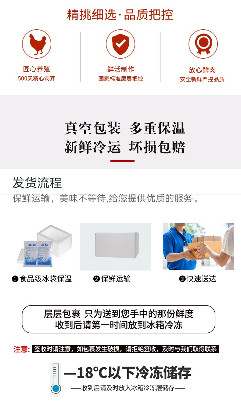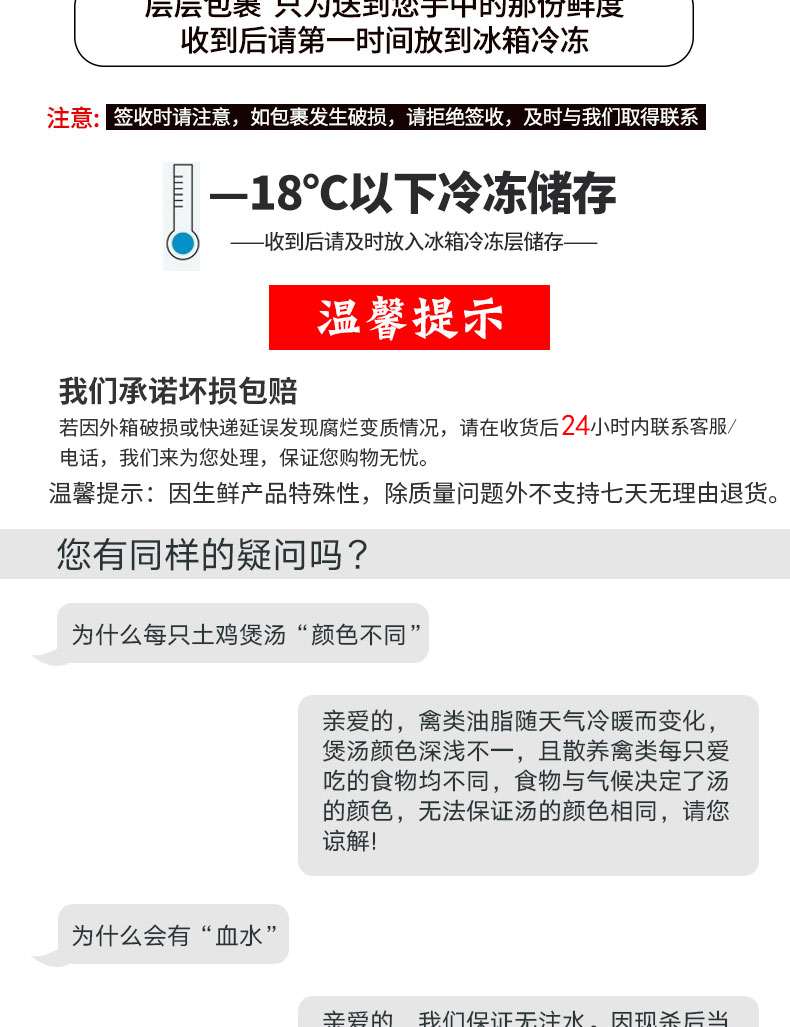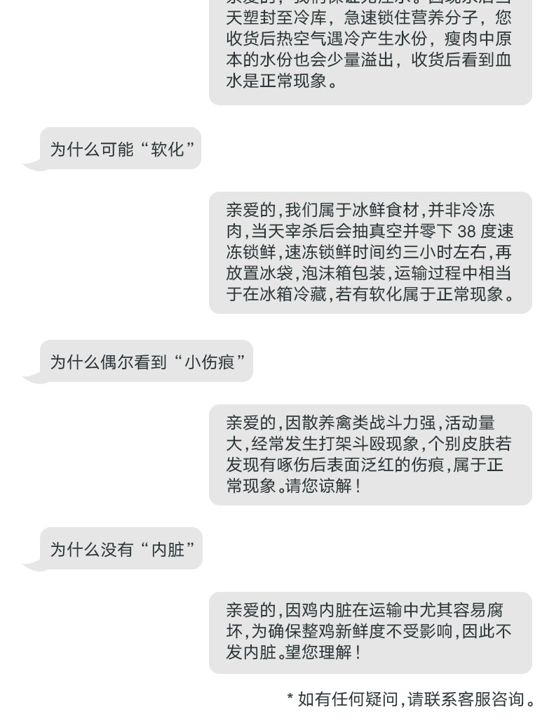 2、由于生鲜产品具有特殊性和相关规定,发货后不接受7天无理由退换。下单时请一定确认收件信息,因客户原因导致转寄、延派、误派、擅自拒收、退货等不在理赔范围