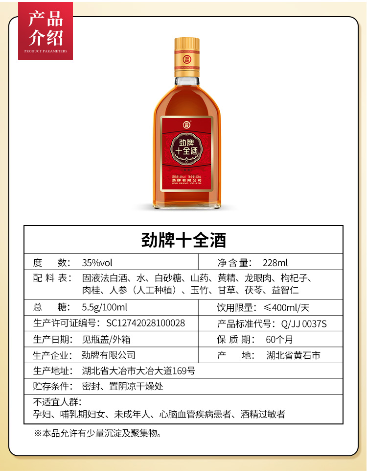 劲牌 35度258ml劲酒 228ml十全酒 自饮组合 高性价比