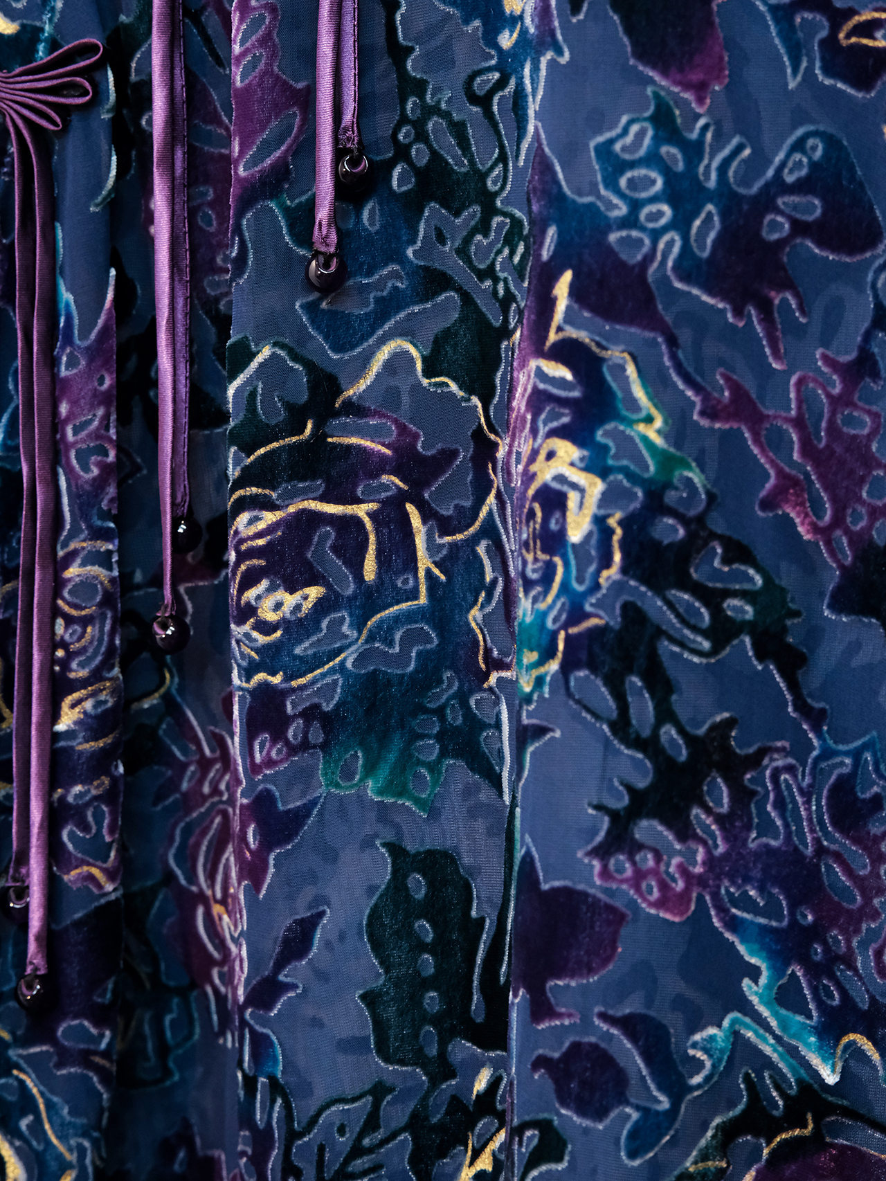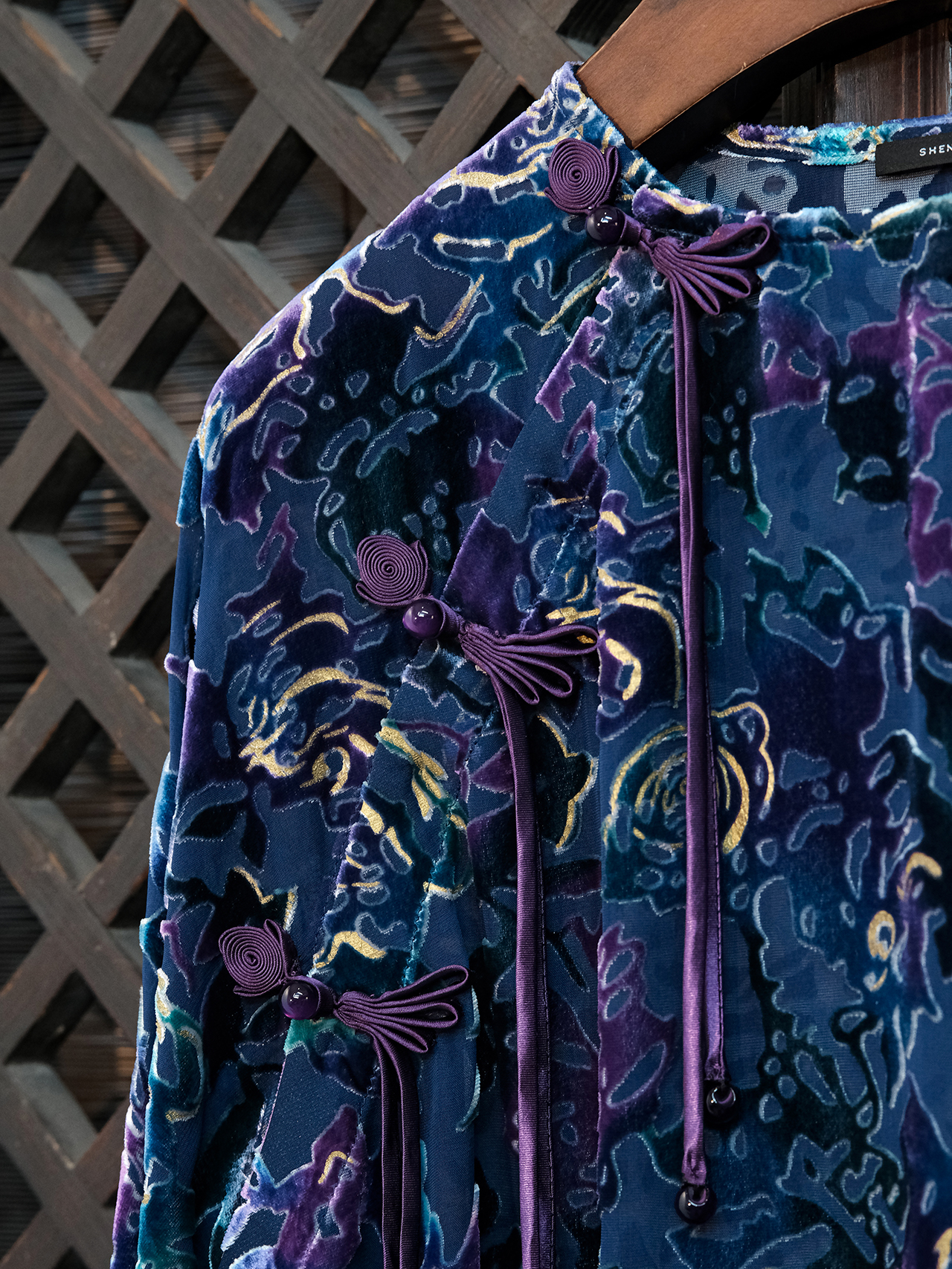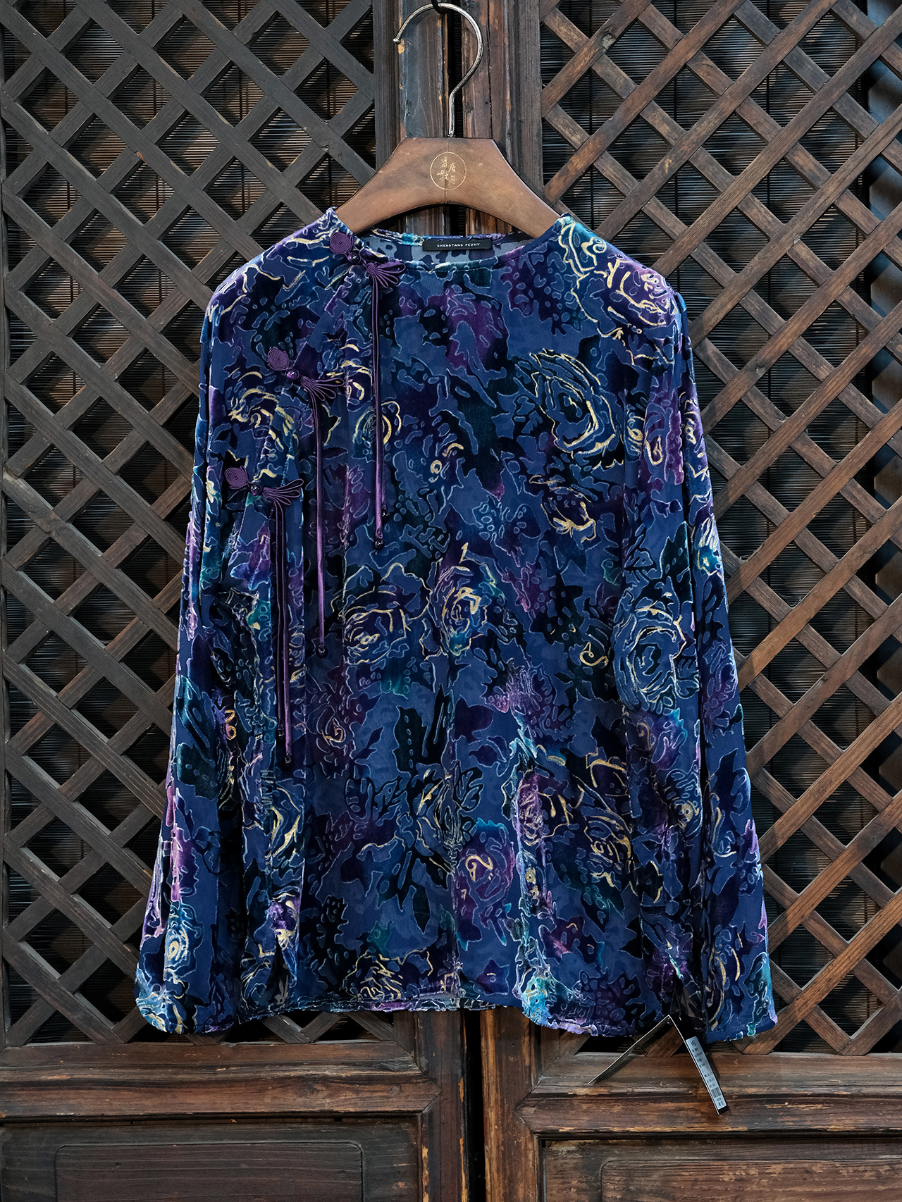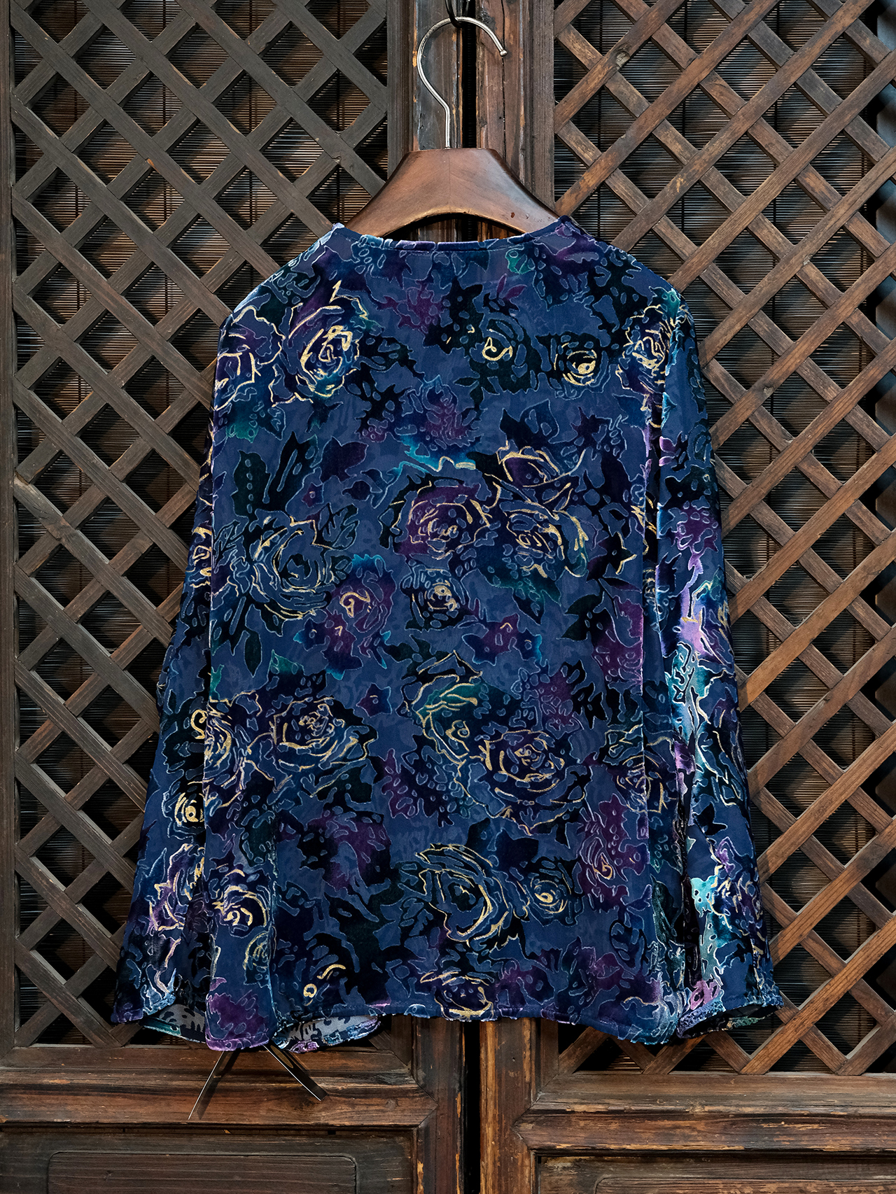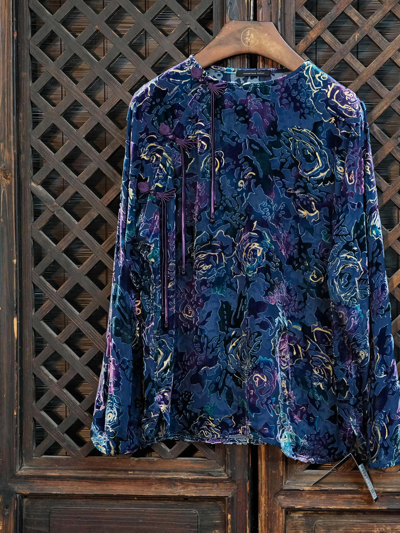 盛唐牡丹|抽象玫瑰丝绒偏襟上衣