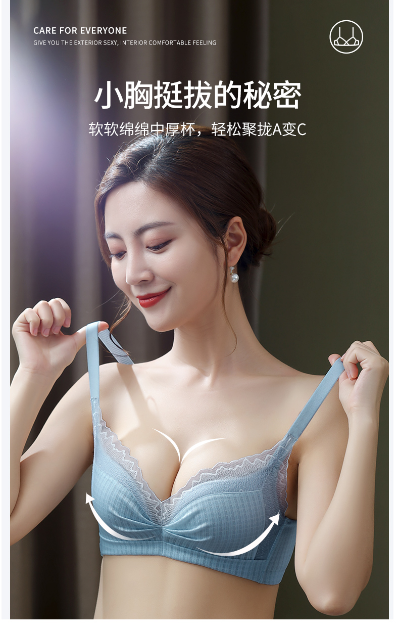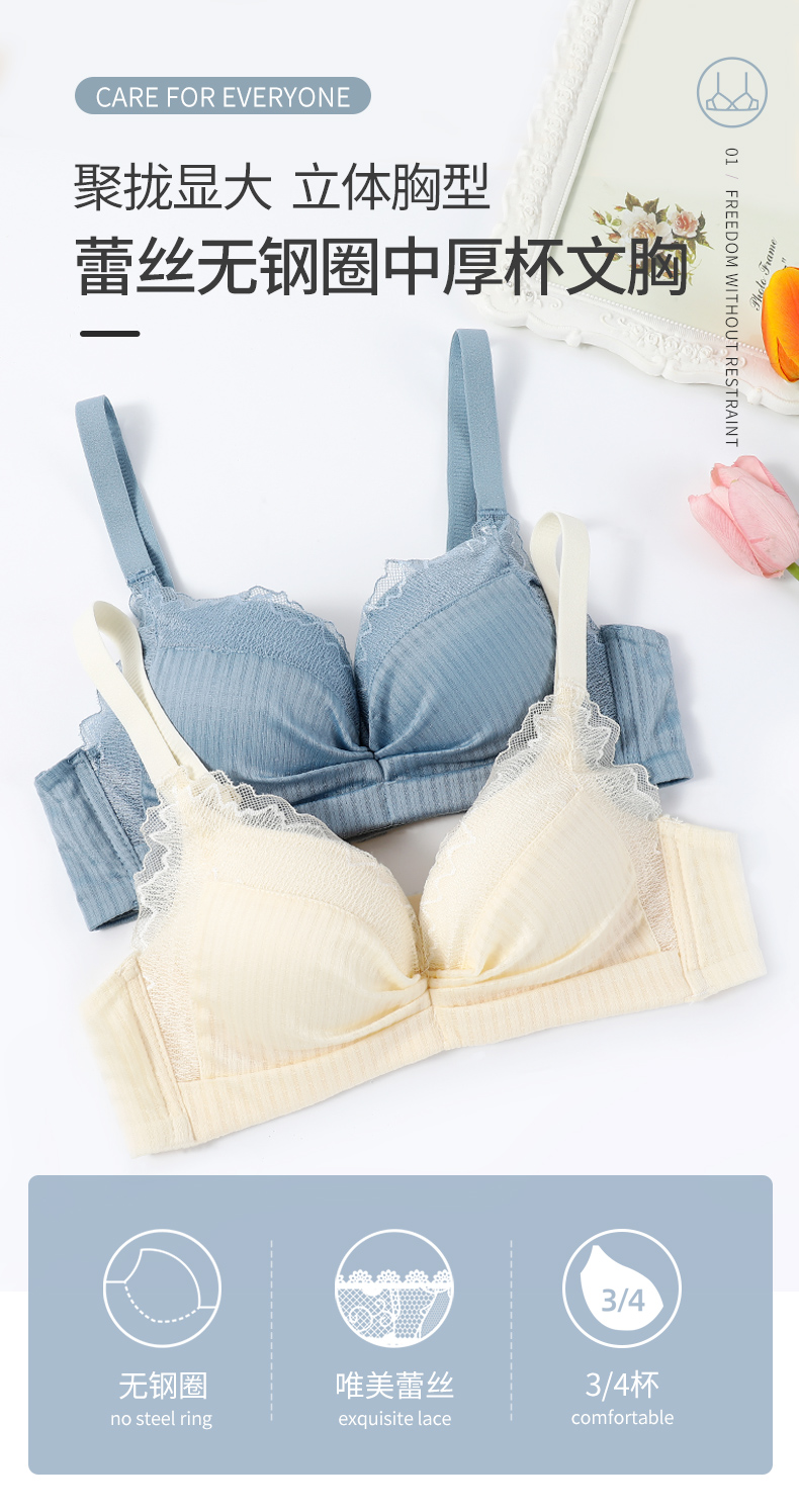 雅黛丽内衣女小胸聚拢上薄下厚无钢圈收副乳防下垂蕾丝文胸罩