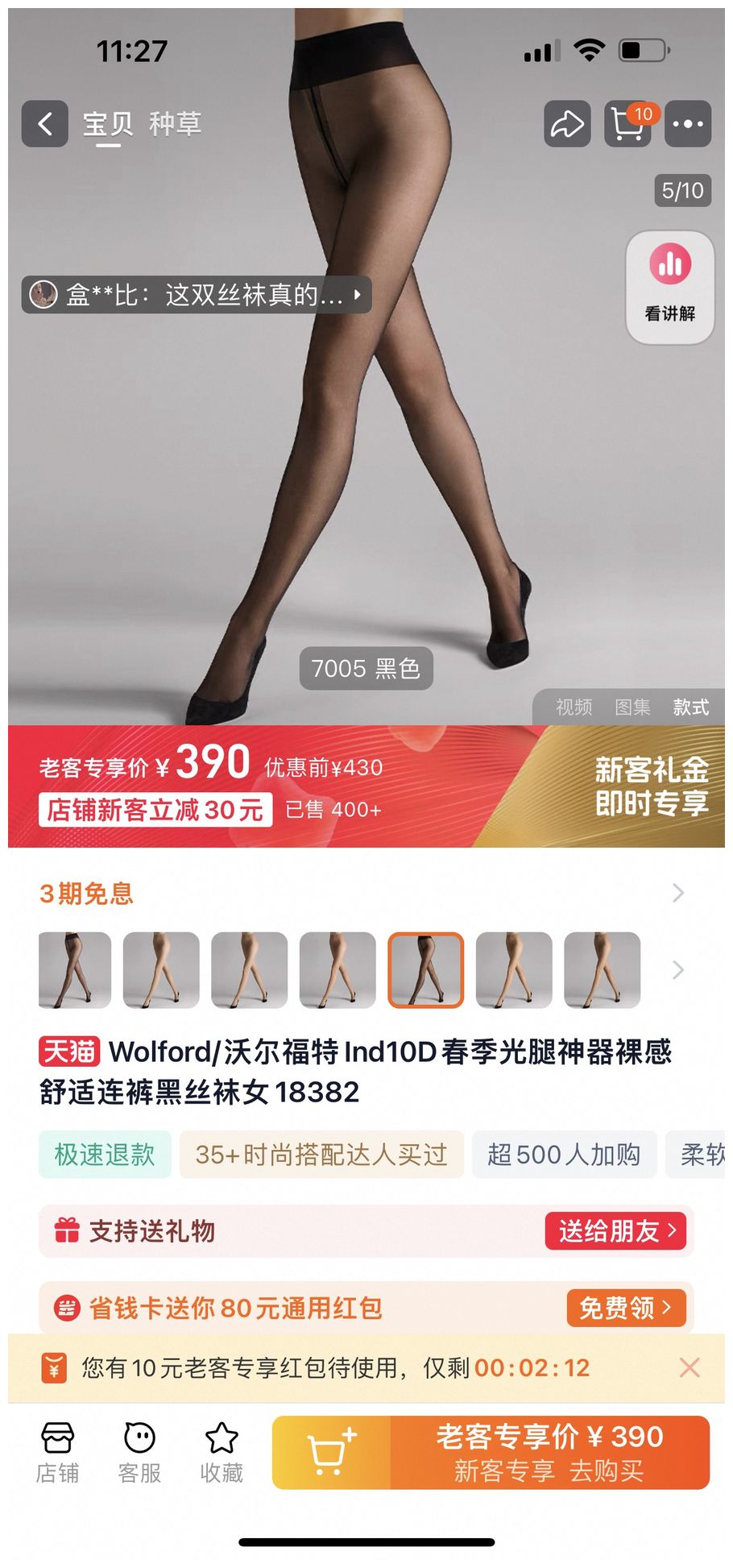 纯原 Wolford|沃尔福特Pure10D裸感连裤丝袜~