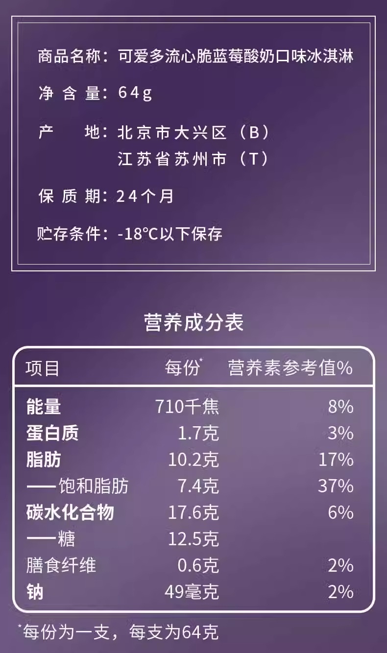 和路雪可爱多蓝莓酸奶口味冰淇淋