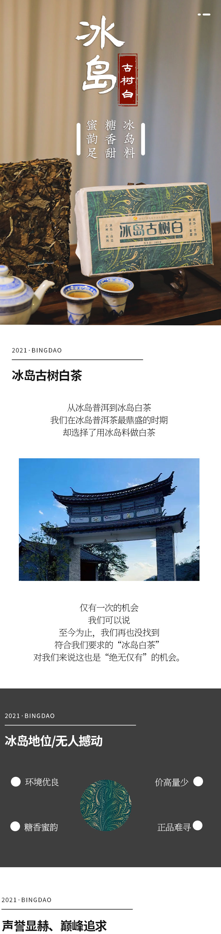 茶频道自营 冰岛古树白 古树白茶 2021年 冰岛古树料 糖香蜜韵甜 500g/片