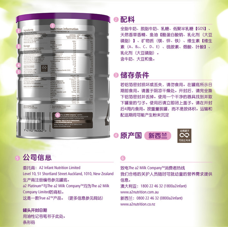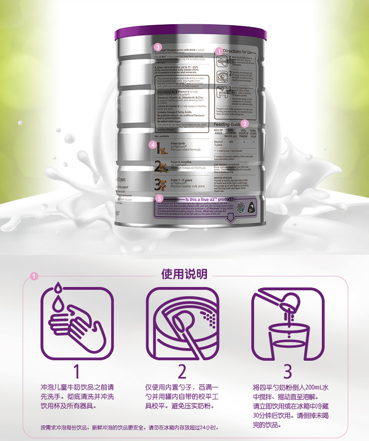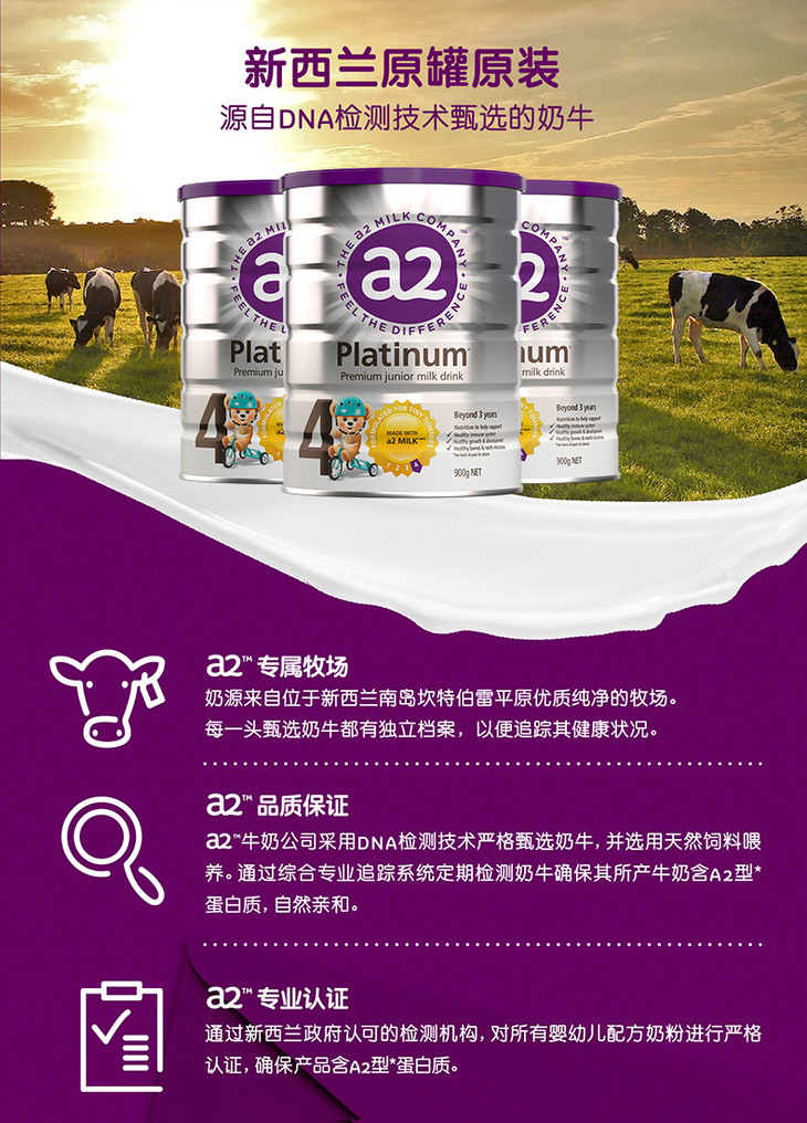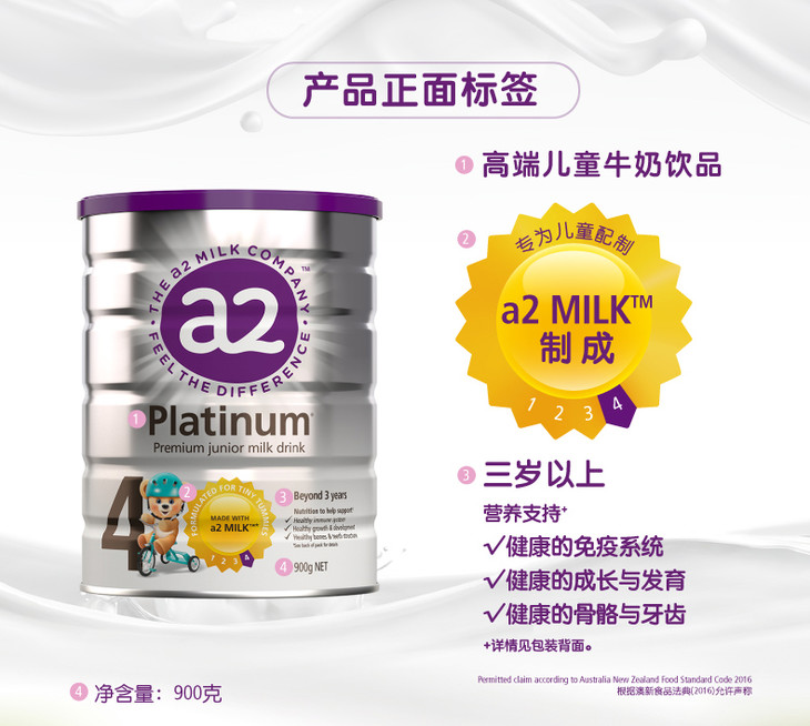【包邮保税区直发】澳洲 A2白金4段婴幼儿奶粉 900g(3岁以上)新旧包装随机