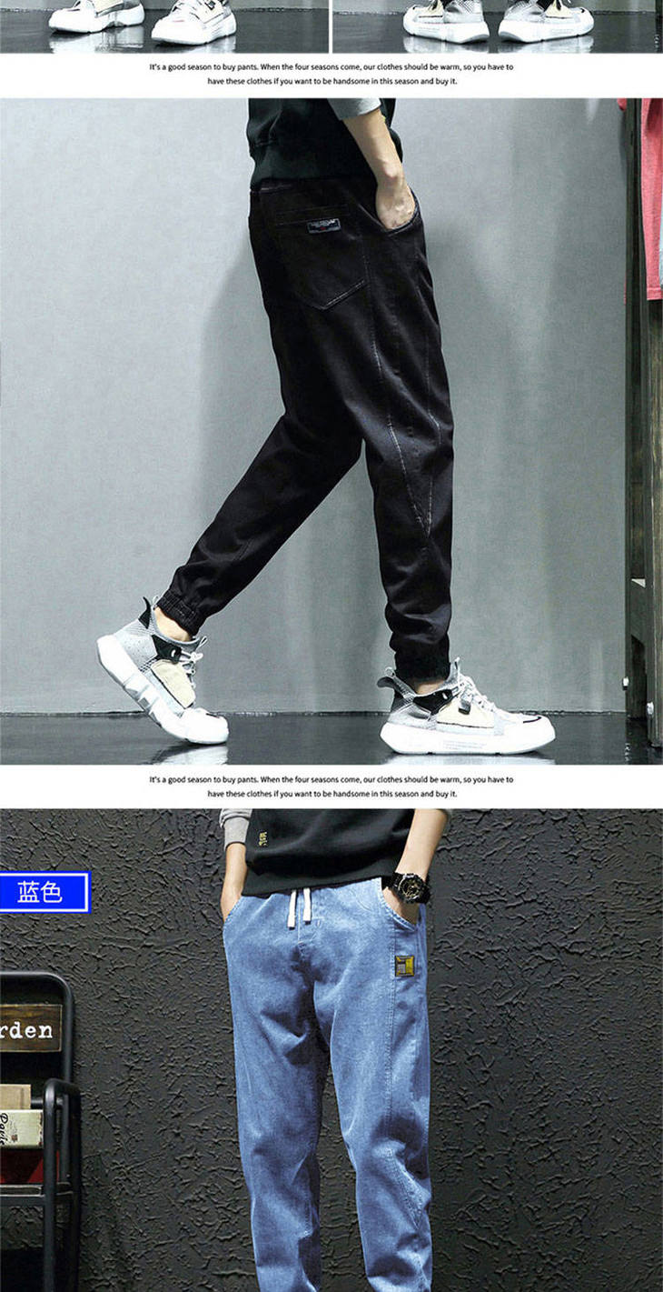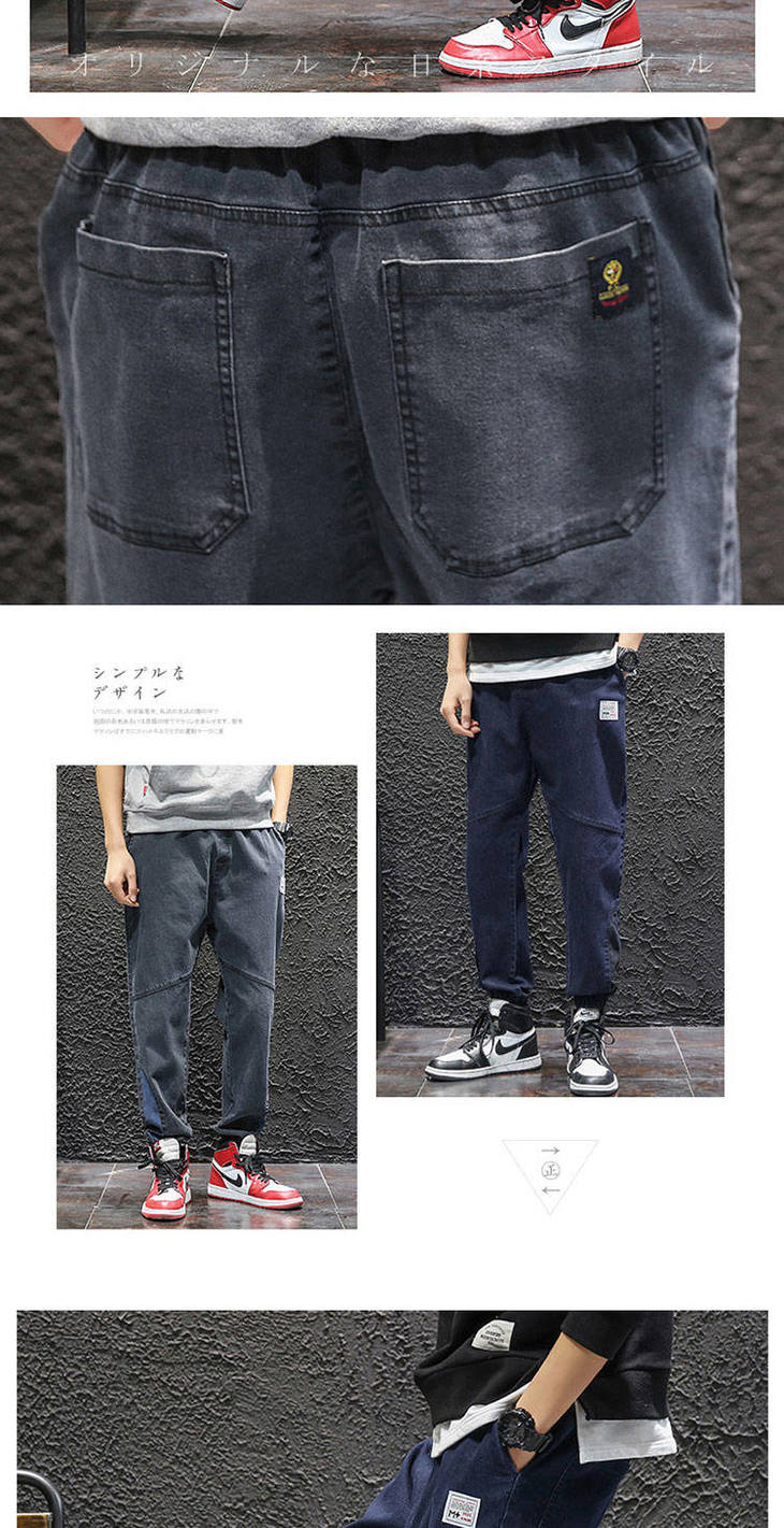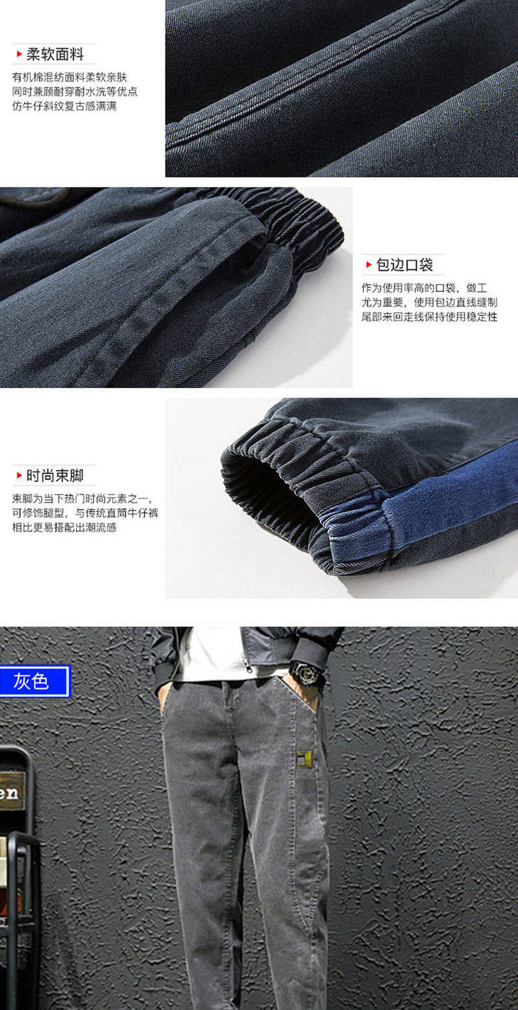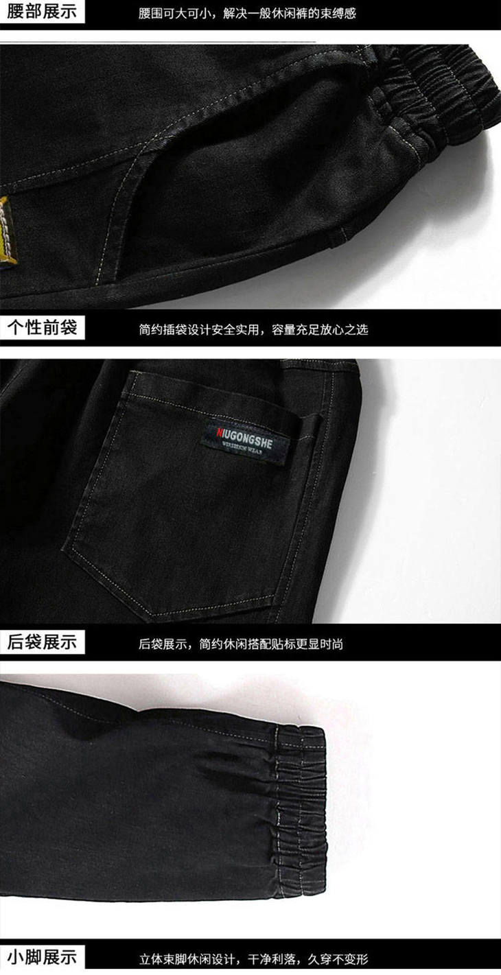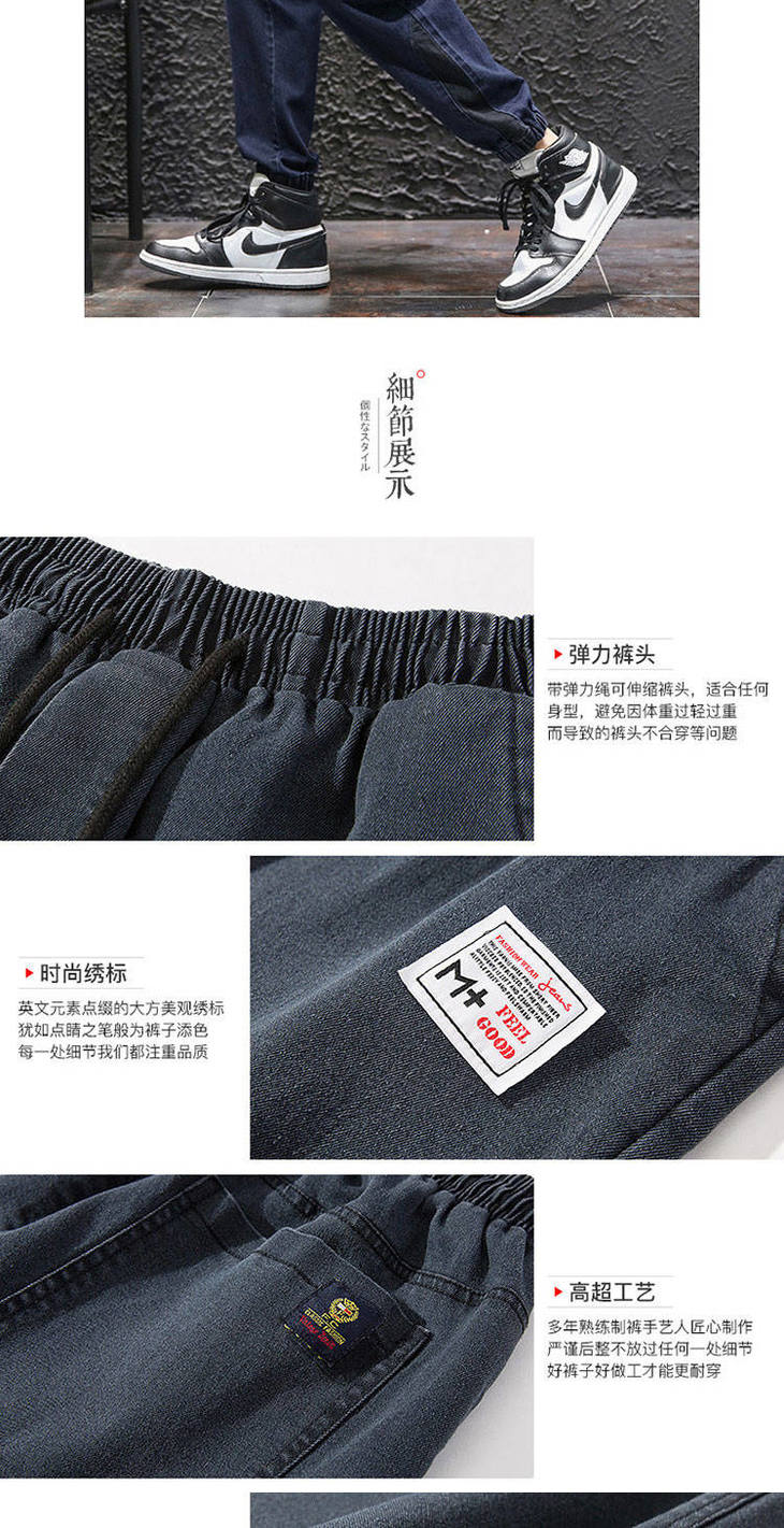 秋季弹力宽松牛仔裤男士工装裤哈伦裤大码小脚束脚裤9分裤胖子