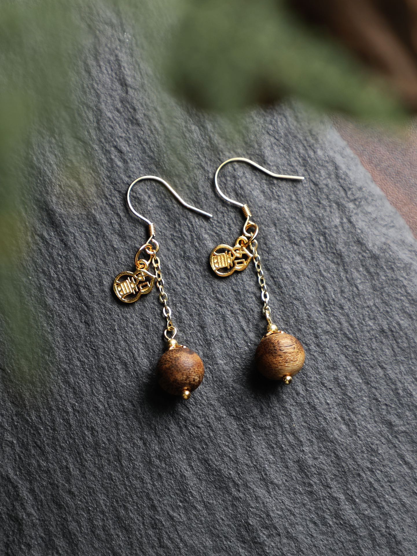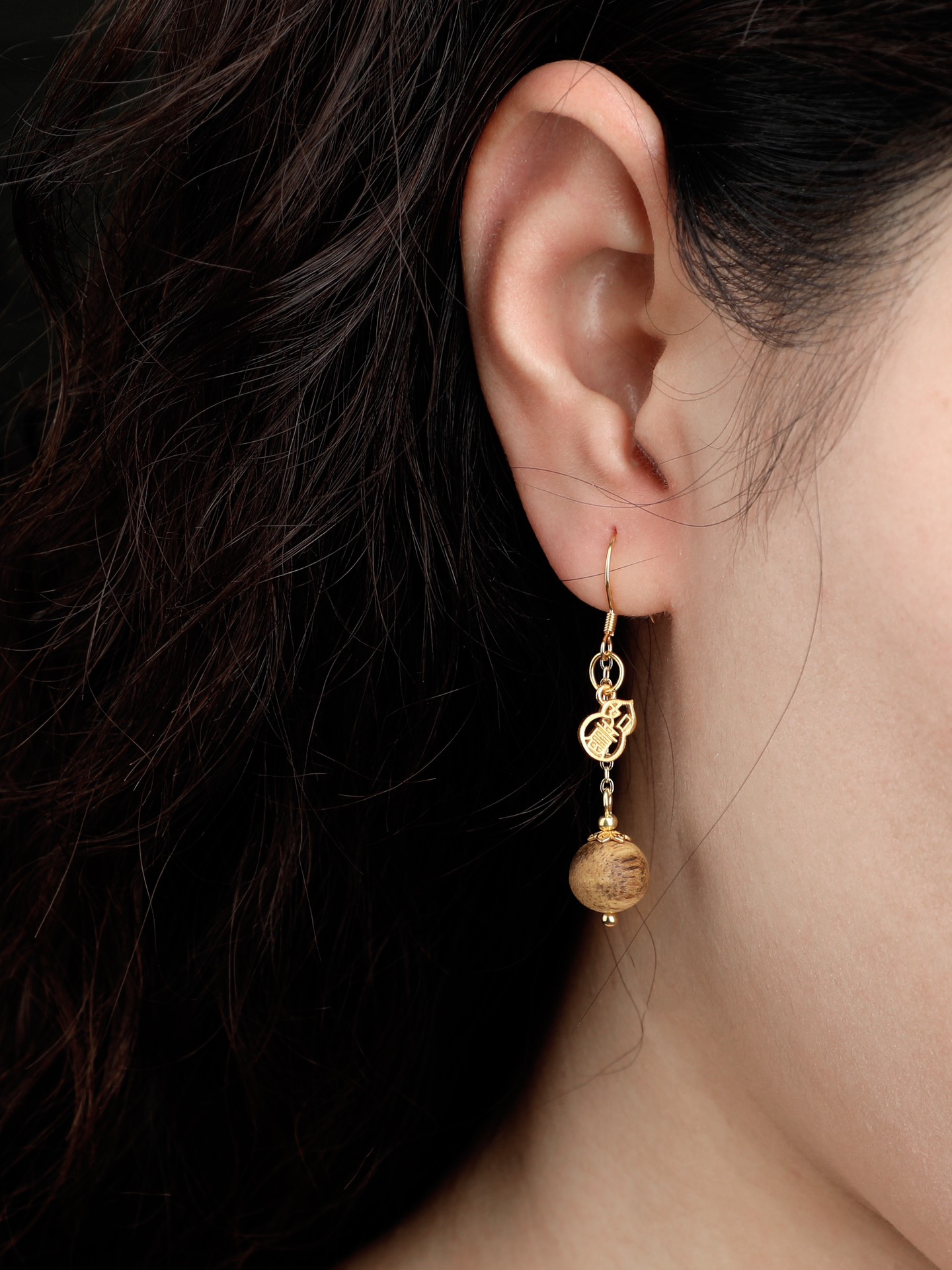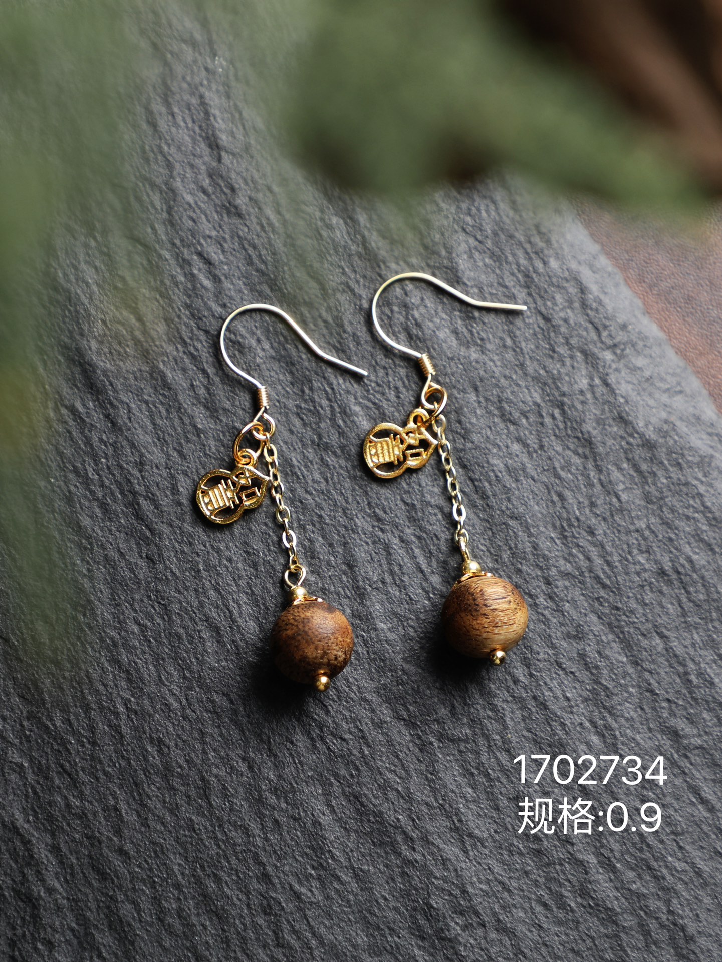 奇楠如意牌耳环1对天然奇楠沉香创意首饰
